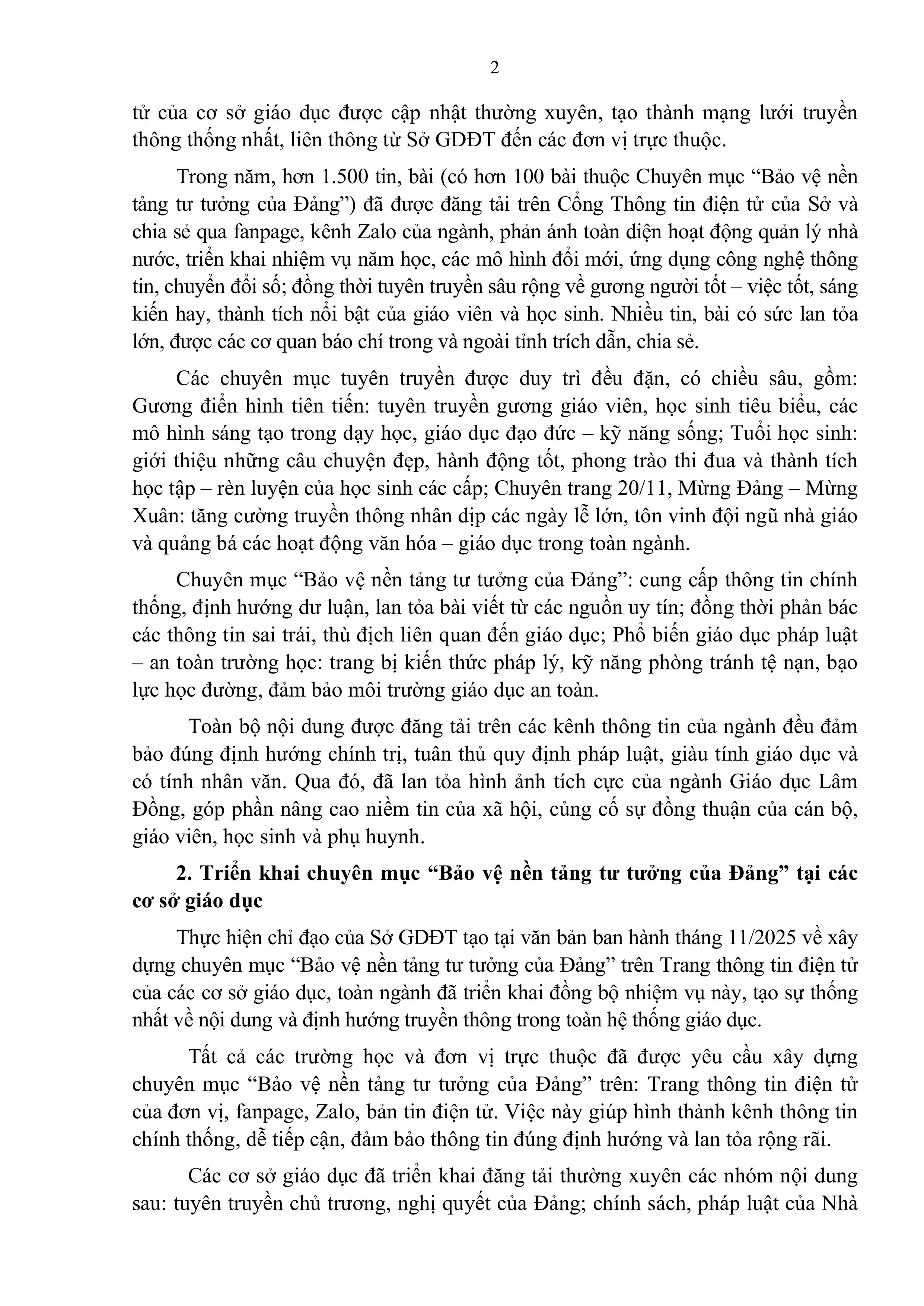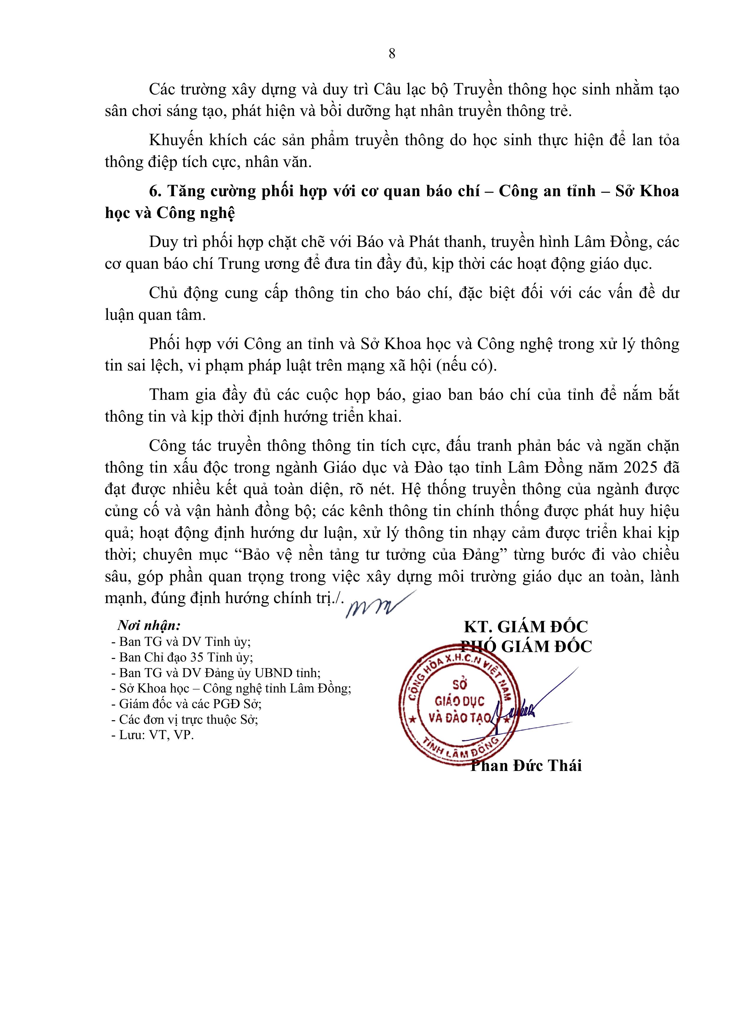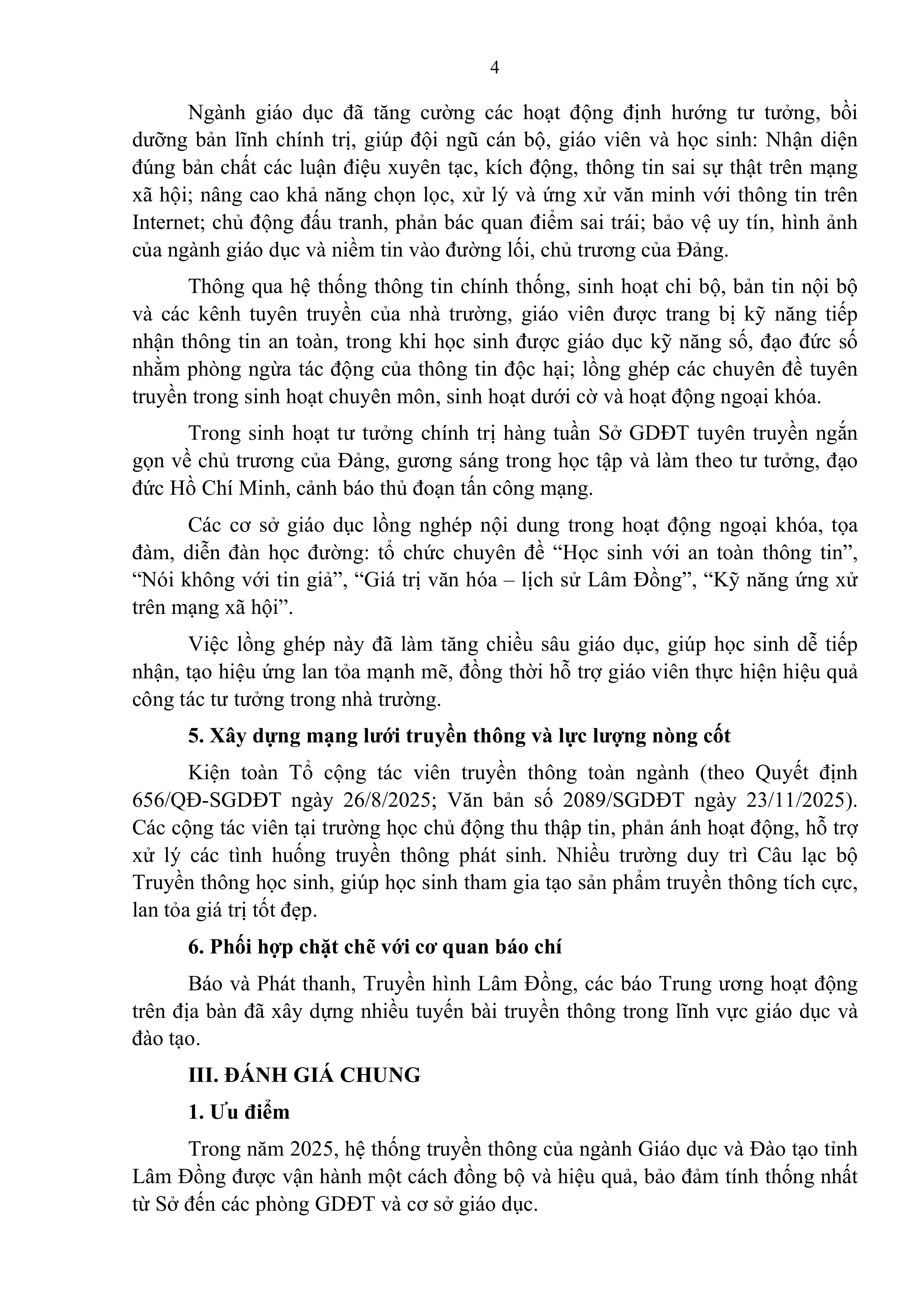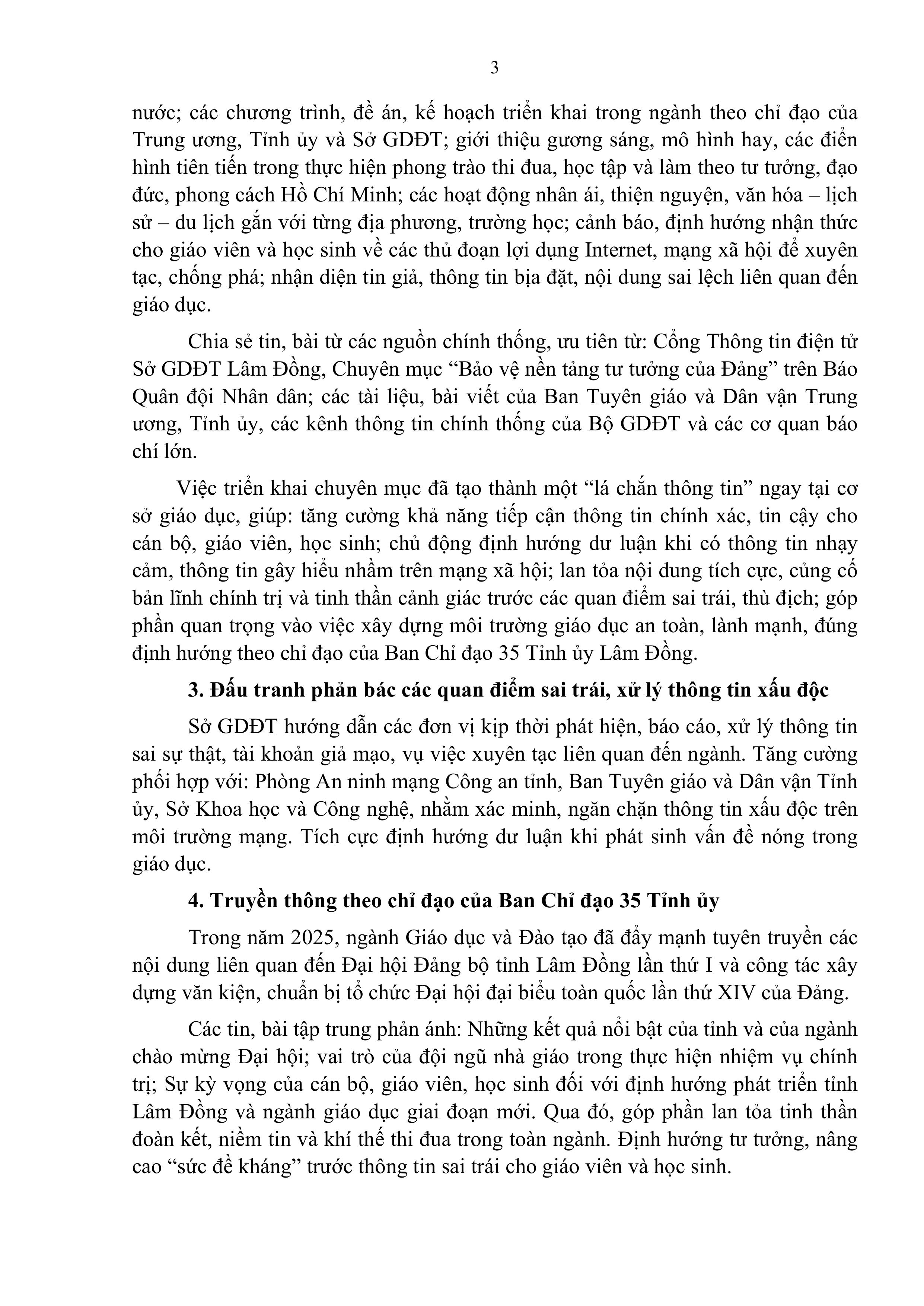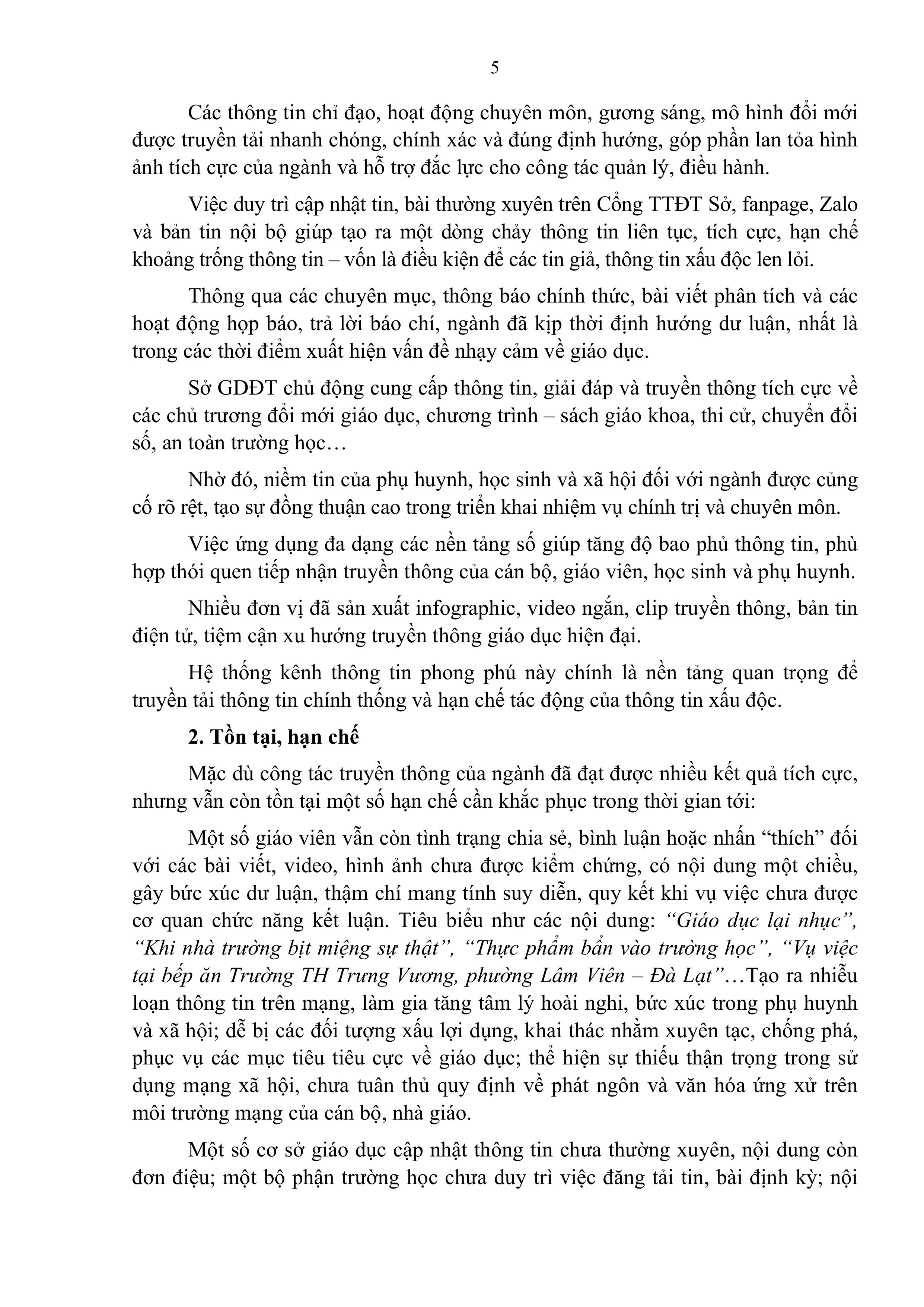 Báo cáo Kết quả truyền thông thông tin tích cực, đấu tranh phản bác và ngăn chặn thông tin xấu độc trong ngành Giáo dục và Đào tạo tỉnh Lâm Đồng năm 2025