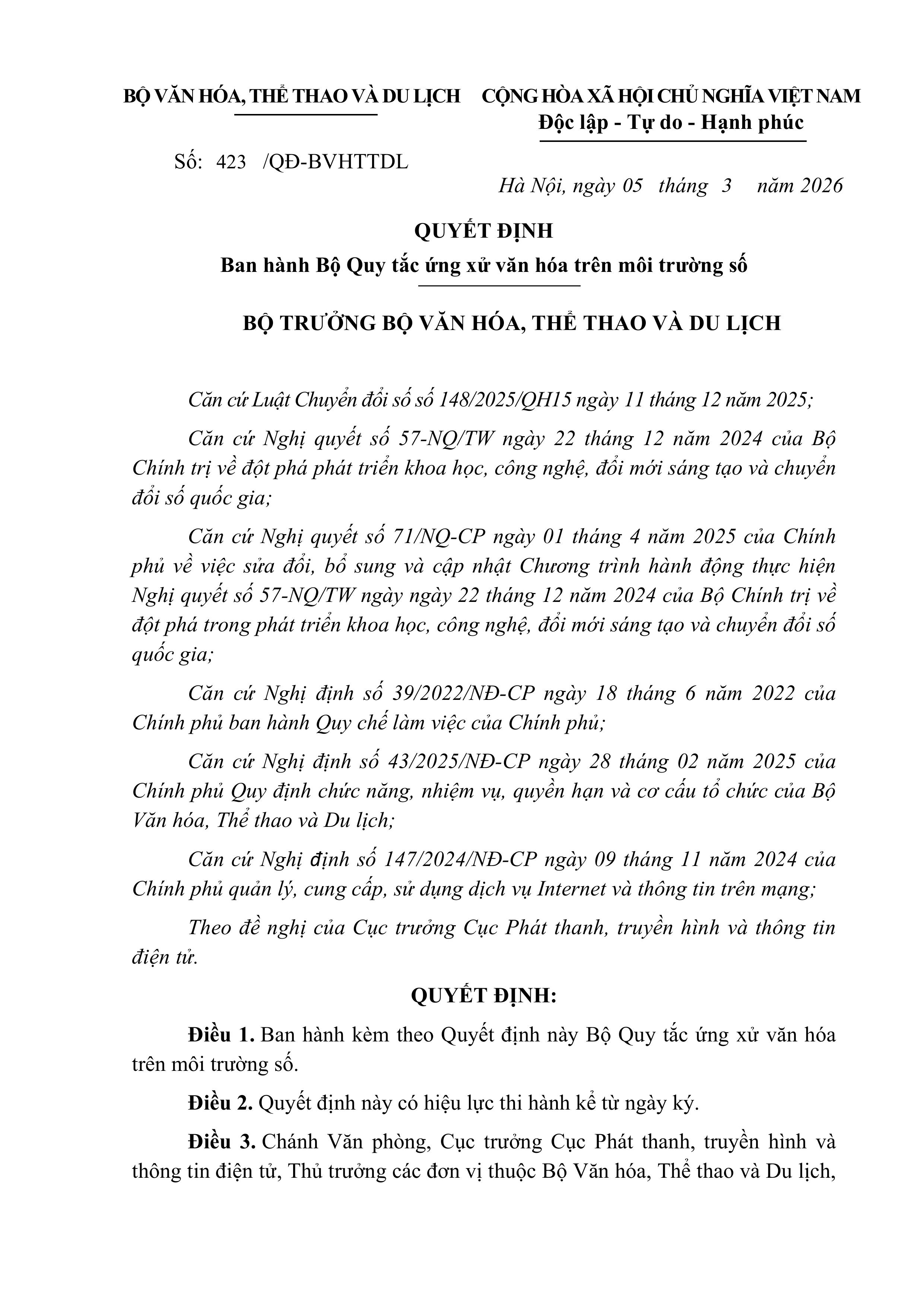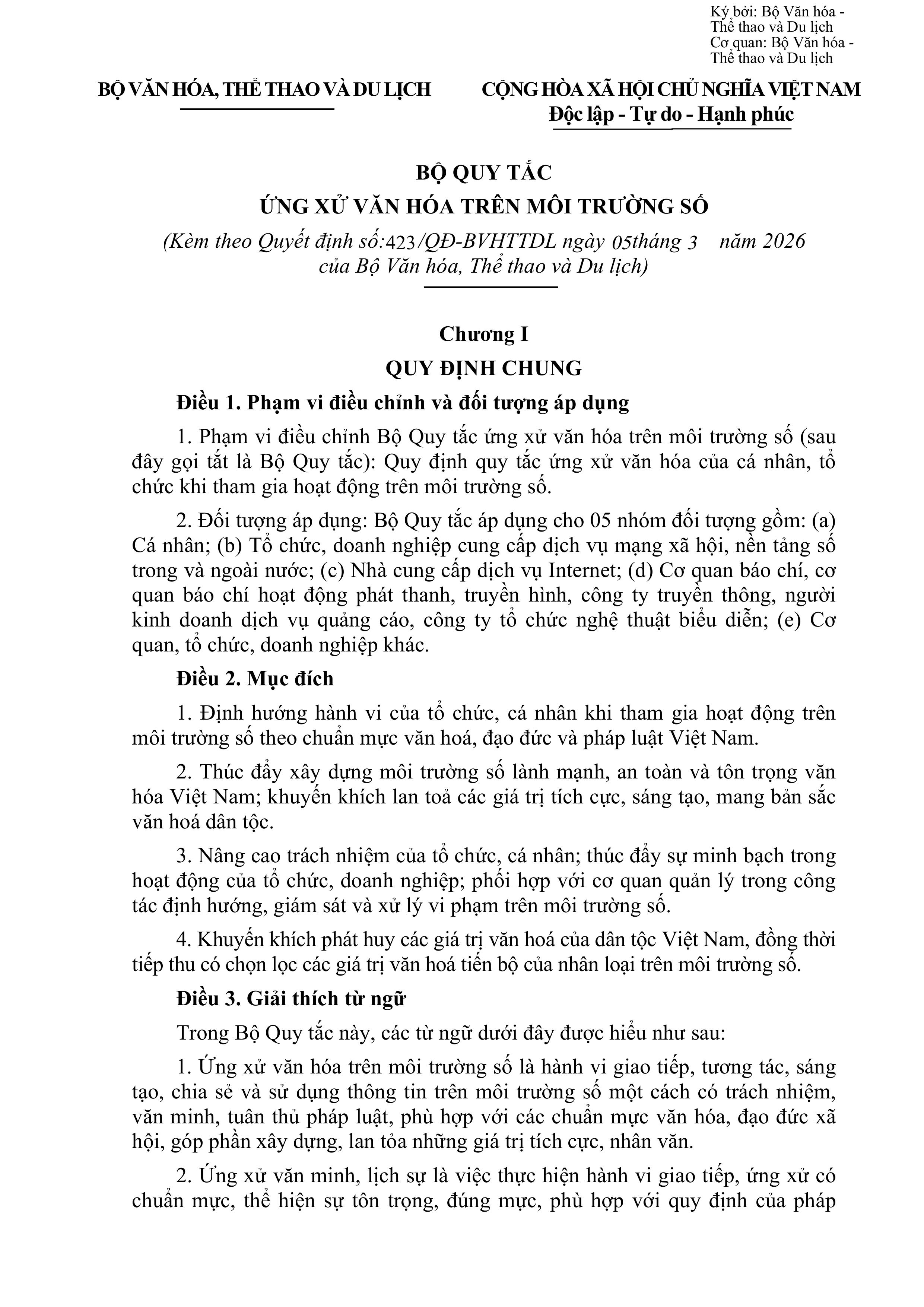 Bộ Quy tắc ứng xử văn hóa trên môi trường số