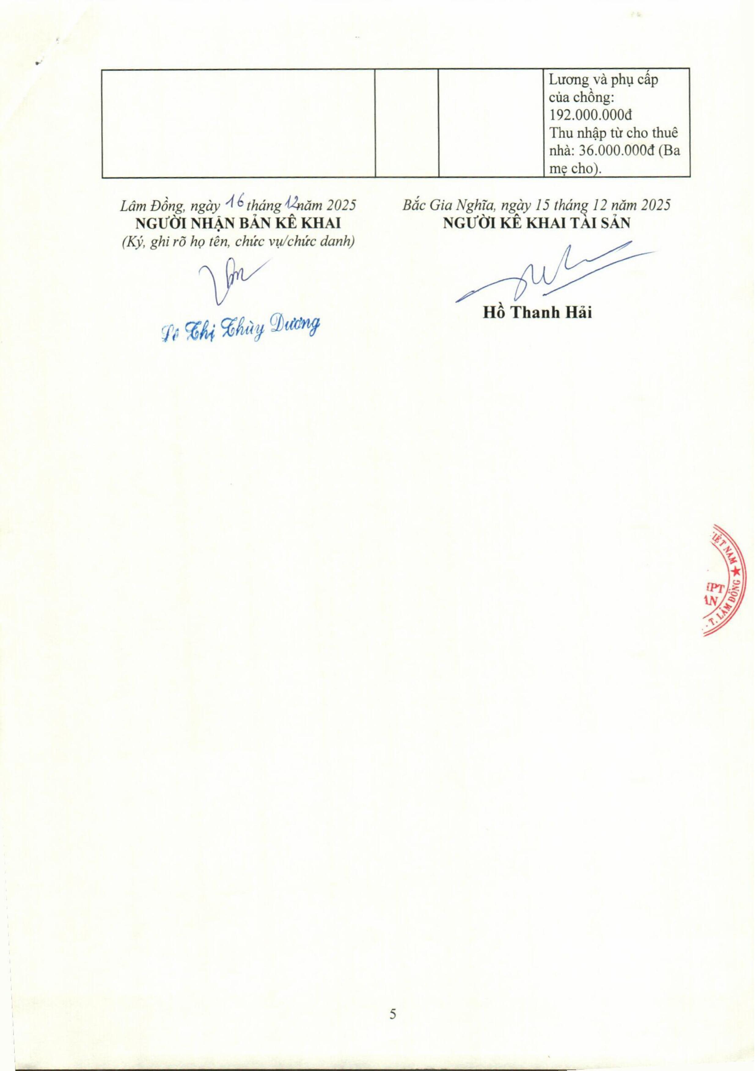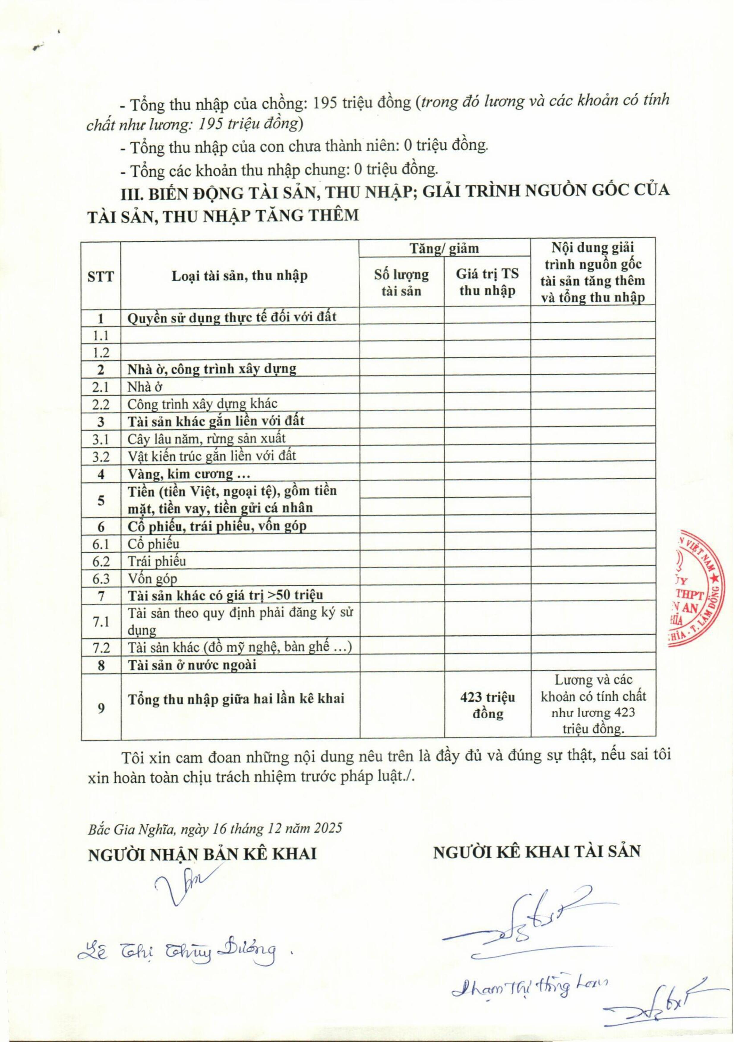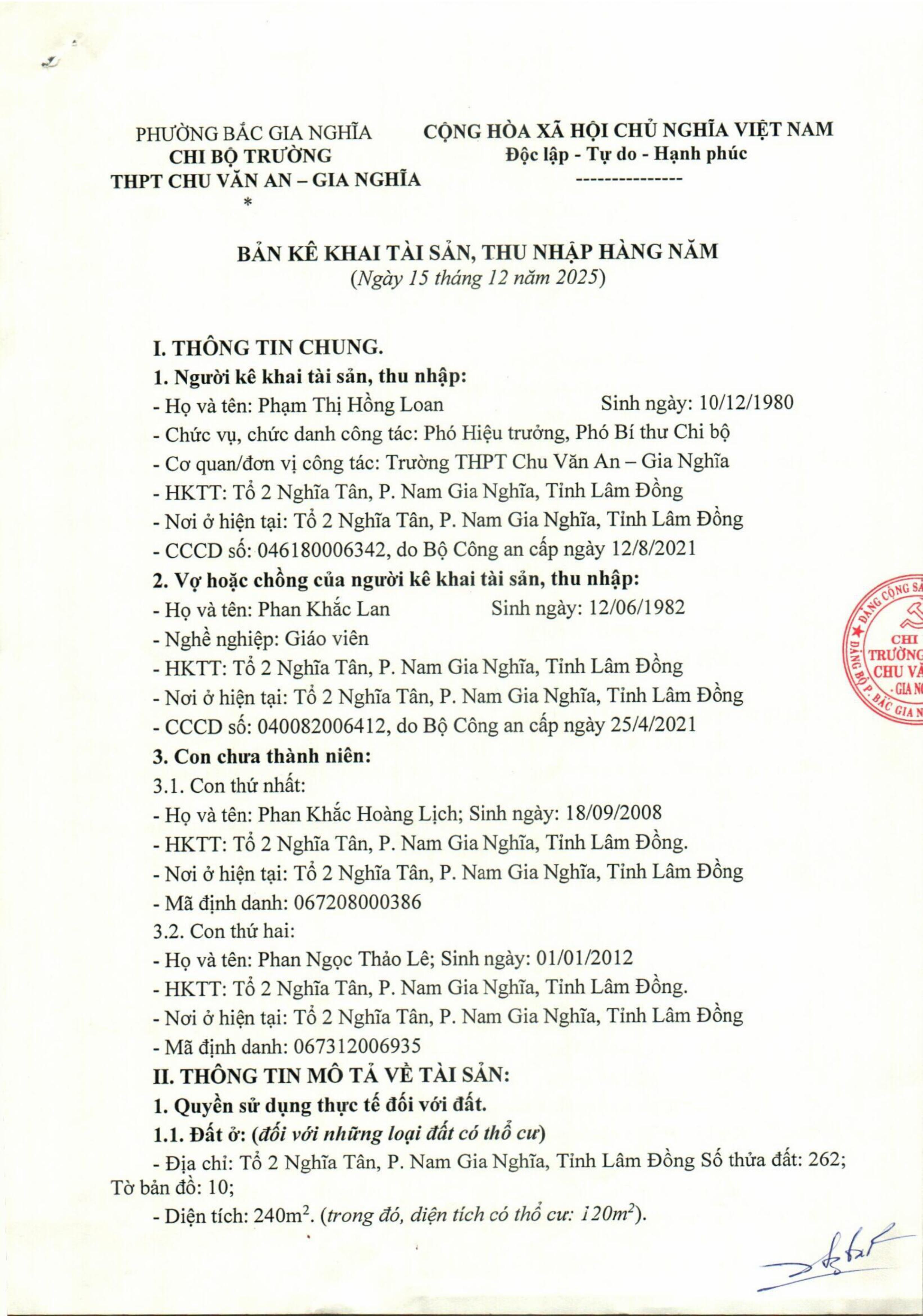 Công khai tài sản của Lãnh đạo nhà trường và Kế toán năm 2025