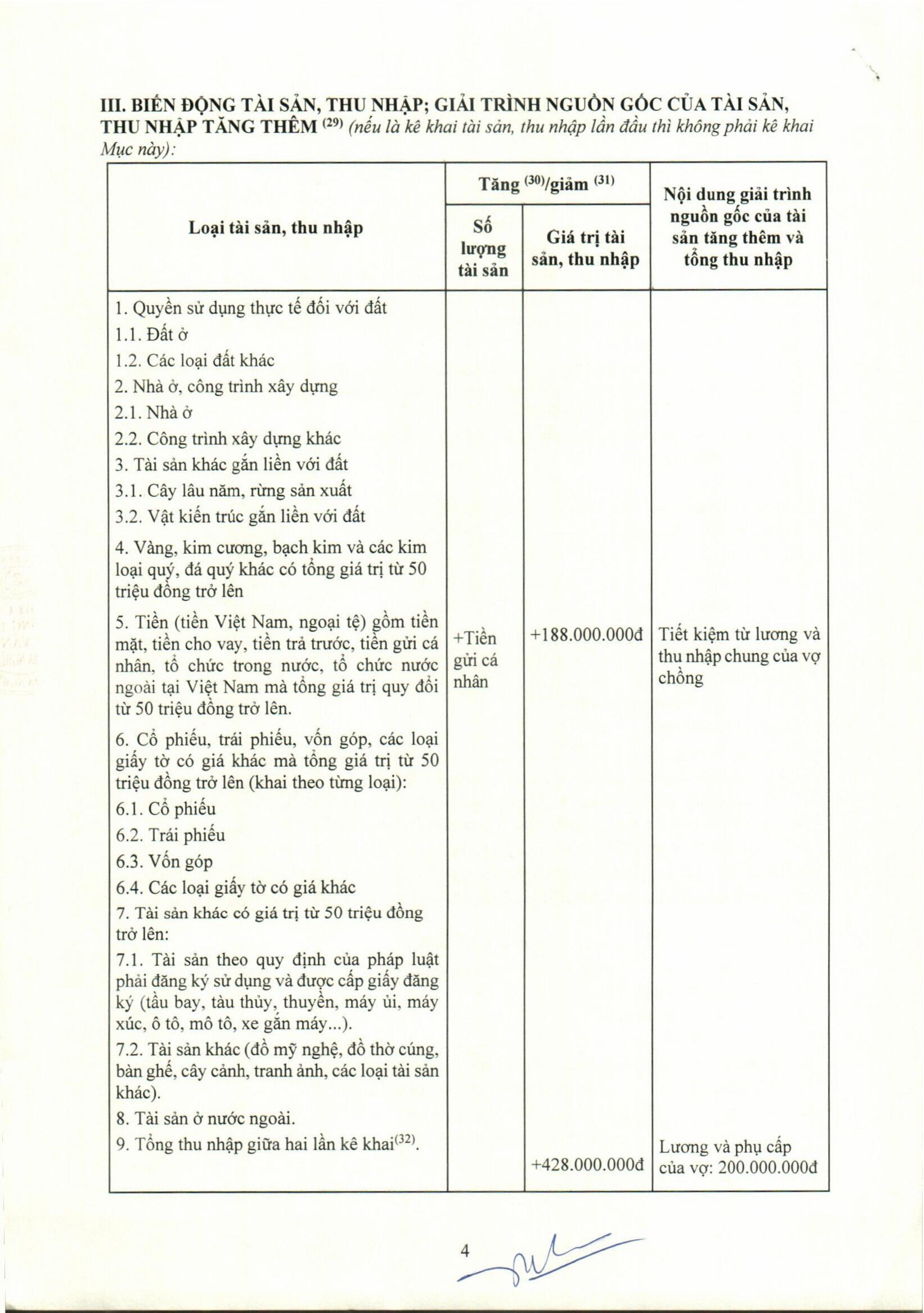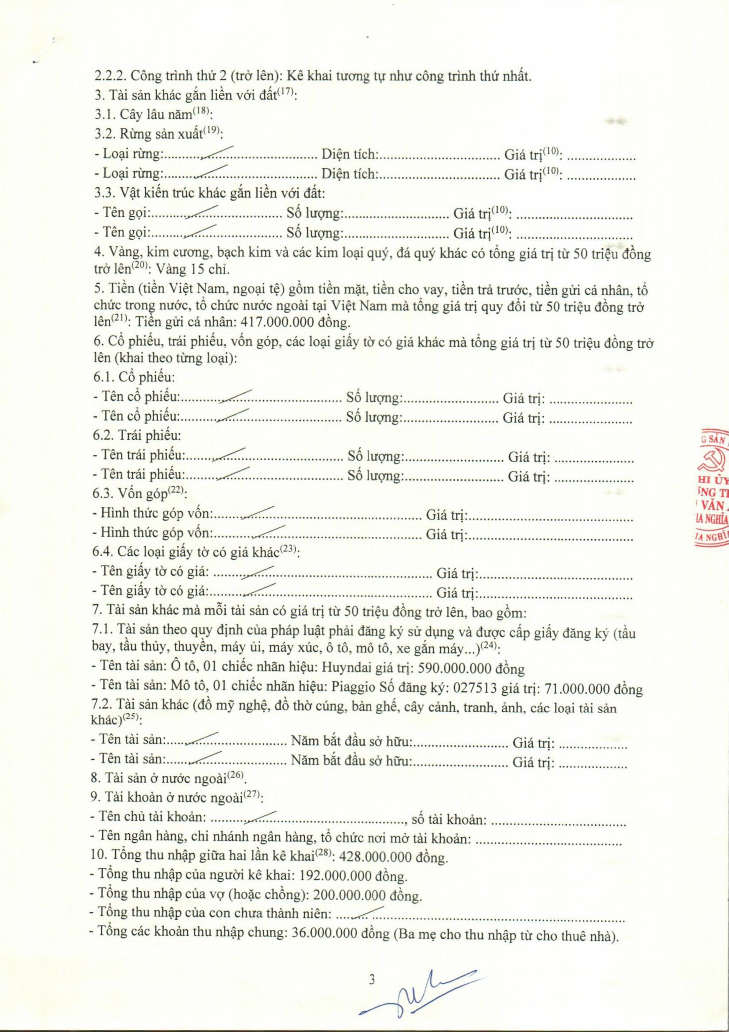 3. Công khai tài sản của Lãnh đạo nhà trường và Kế toán năm 2025