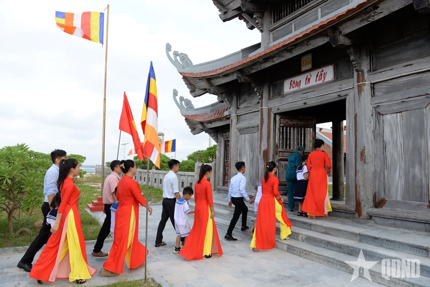 Người dân tại xã đảo Song Tử Tây đi lễ chùa đầu năm.