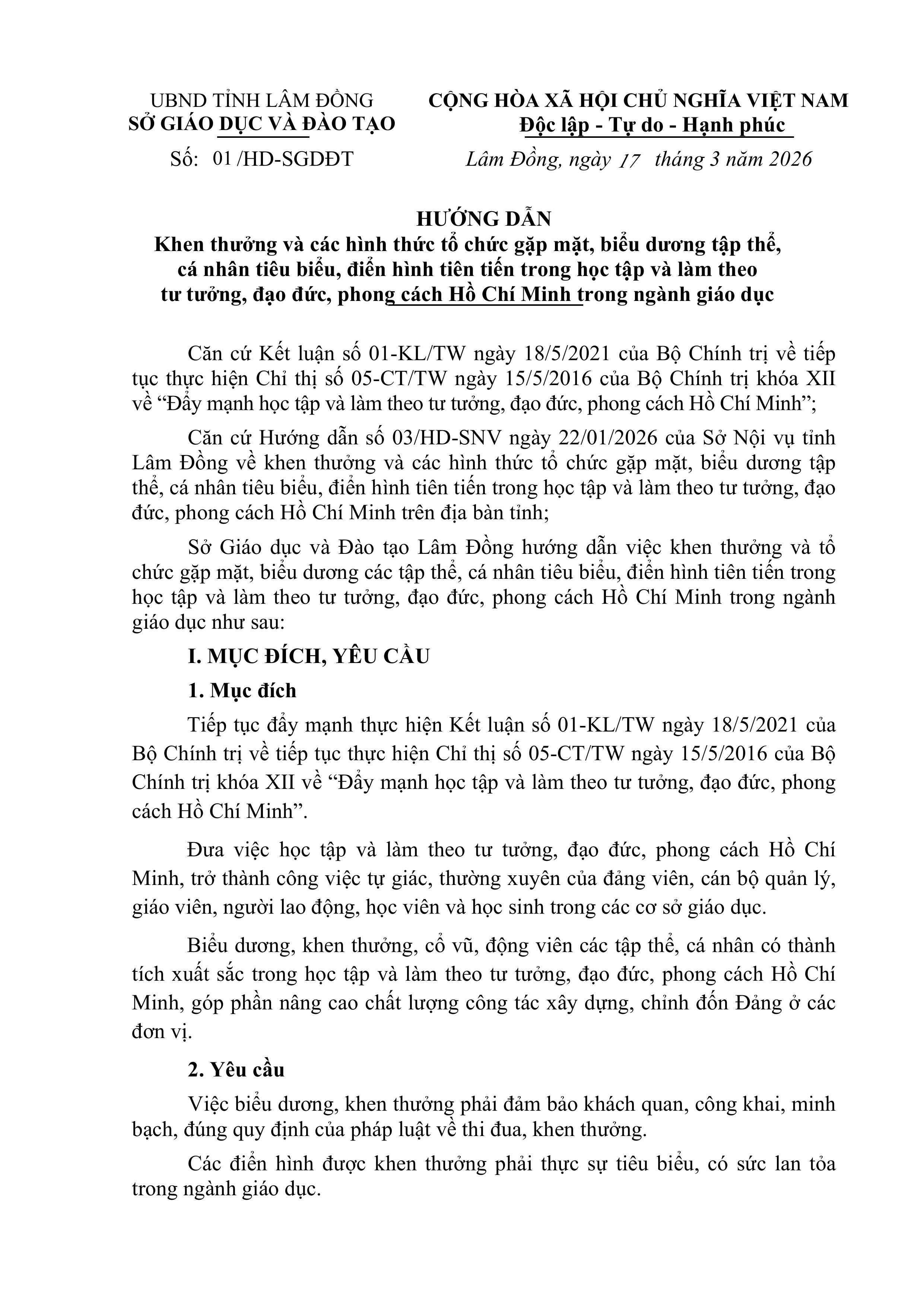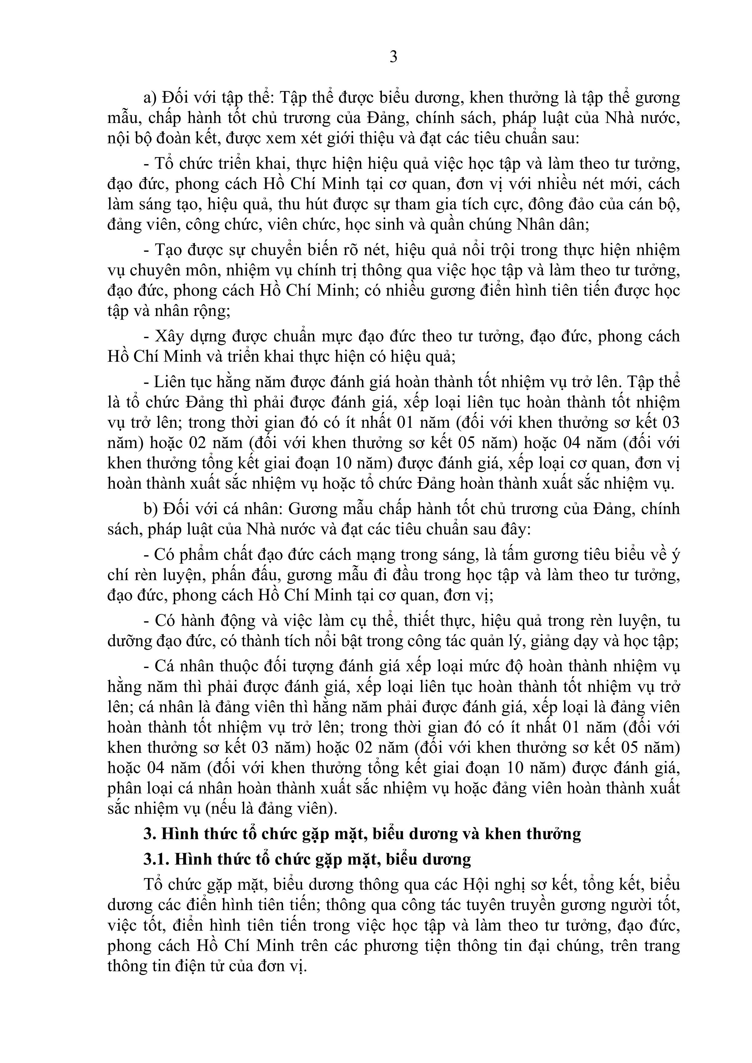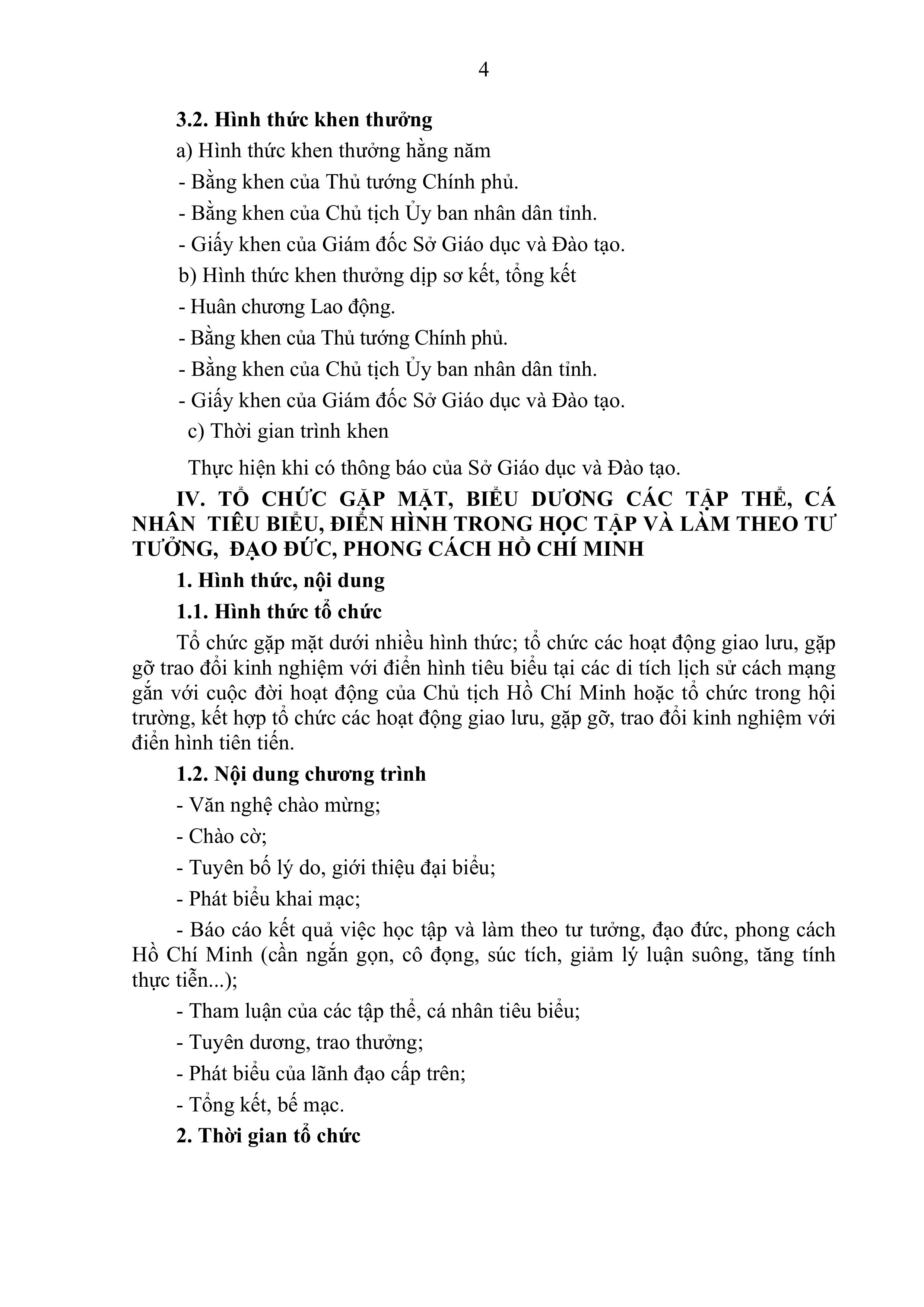 Hướng dẫn Khen thưởng và các hình thức tổ chức gặp mặt, biểu dương tập thể, cá nhân tiêu biểu, điển hình tiên tiến trong học tập và làm theo tư tưởng, đạo đức, phong cách Hồ Chí Minh trong ngành giáo dục