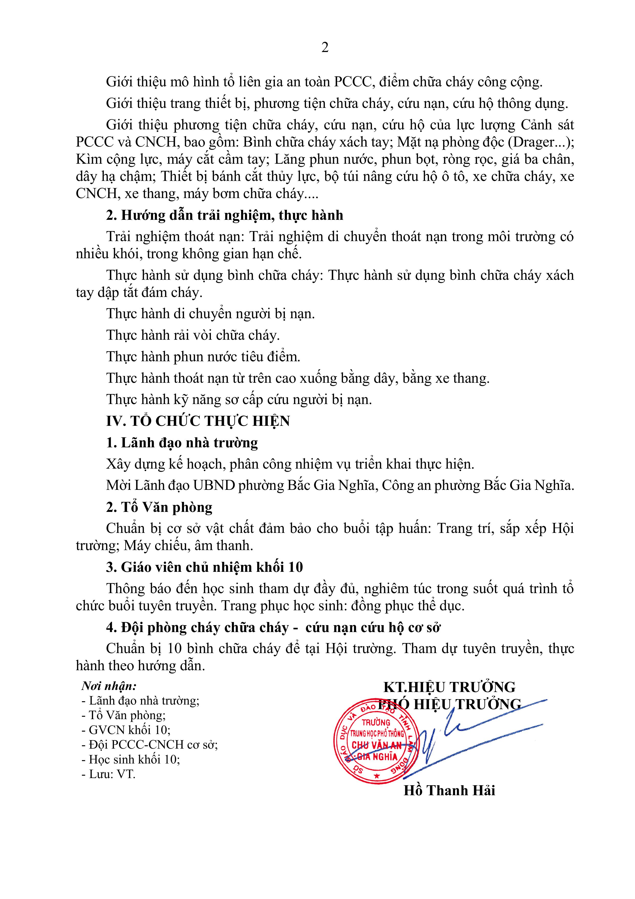 KẾ HOẠCH TUYÊN TRUYỀN, TRẢI NGHIỆM, THỰC HÀNH CHỮA CHÁY VÀ CỨU NẠN, CỨU HỘ NĂM 2025