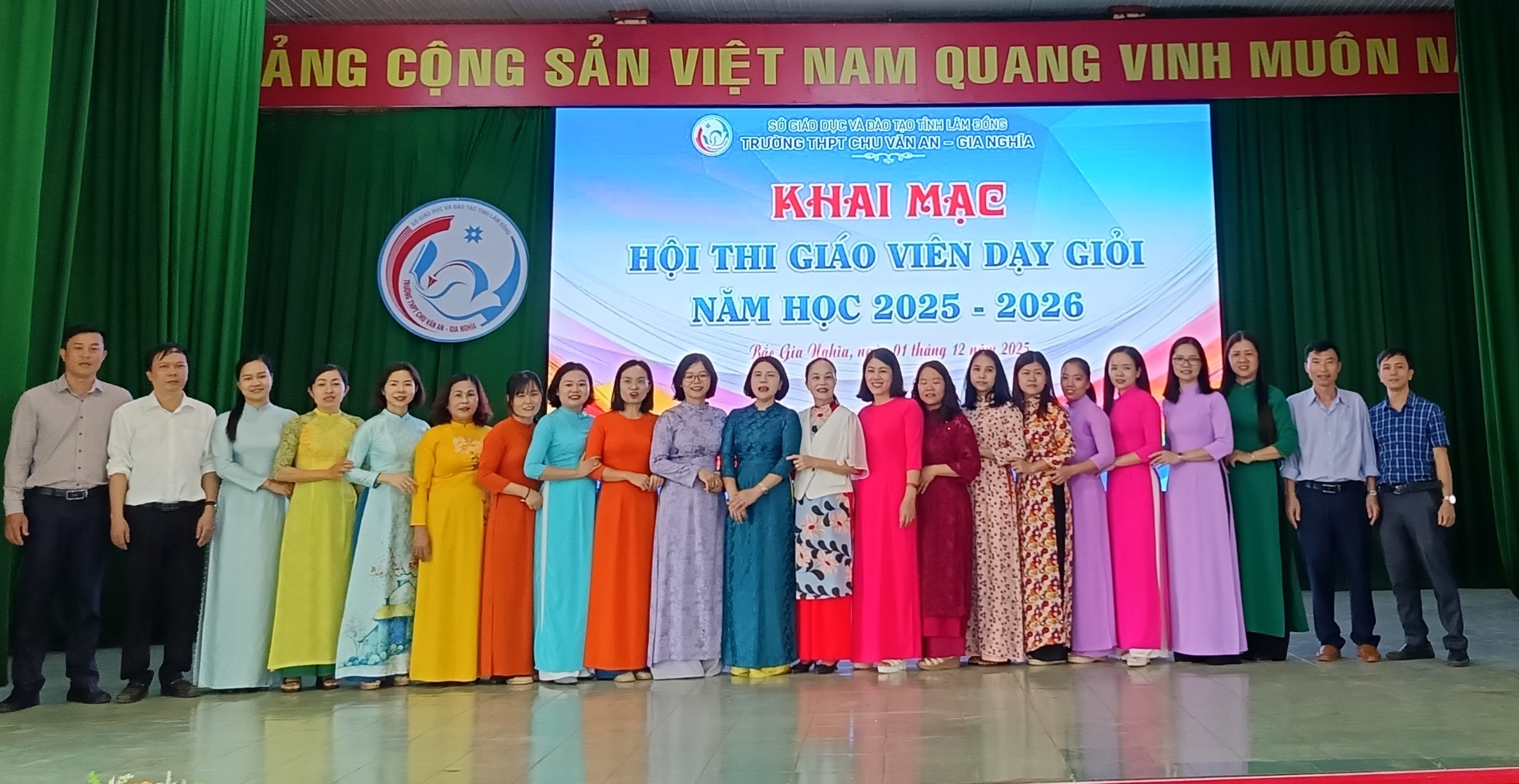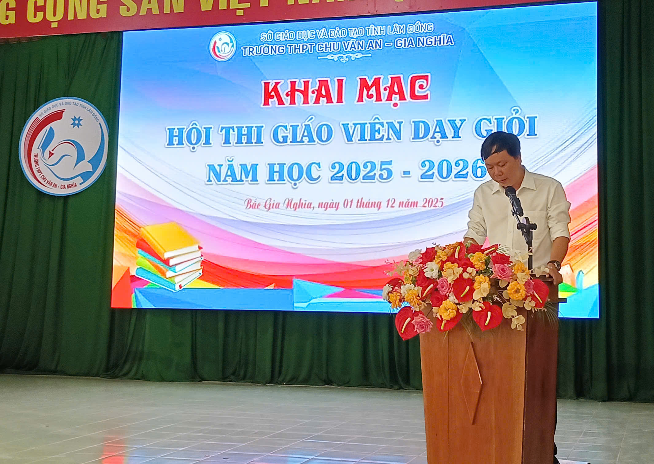 Sáng ngày 01 tháng 12 năm 2025, Trường THPT Chu Văn An – Gia Nghĩa tổ chức Lễ khai mạc Hội thi Giáo viên dạy giỏi cấp trường năm học 2025–2026 trong không khí trang trọng và phấn khởi. Đây là hoạt động thường niên nhằm nâng cao chất lượng đội ngũ, thúc đẩy phong trào tự học – tự bồi dưỡng, đồng thời tạo động lực để giáo viên mạnh dạn đổi mới phương pháp dạy học theo định hướng phát triển phẩm chất, năng lực học sinh.
