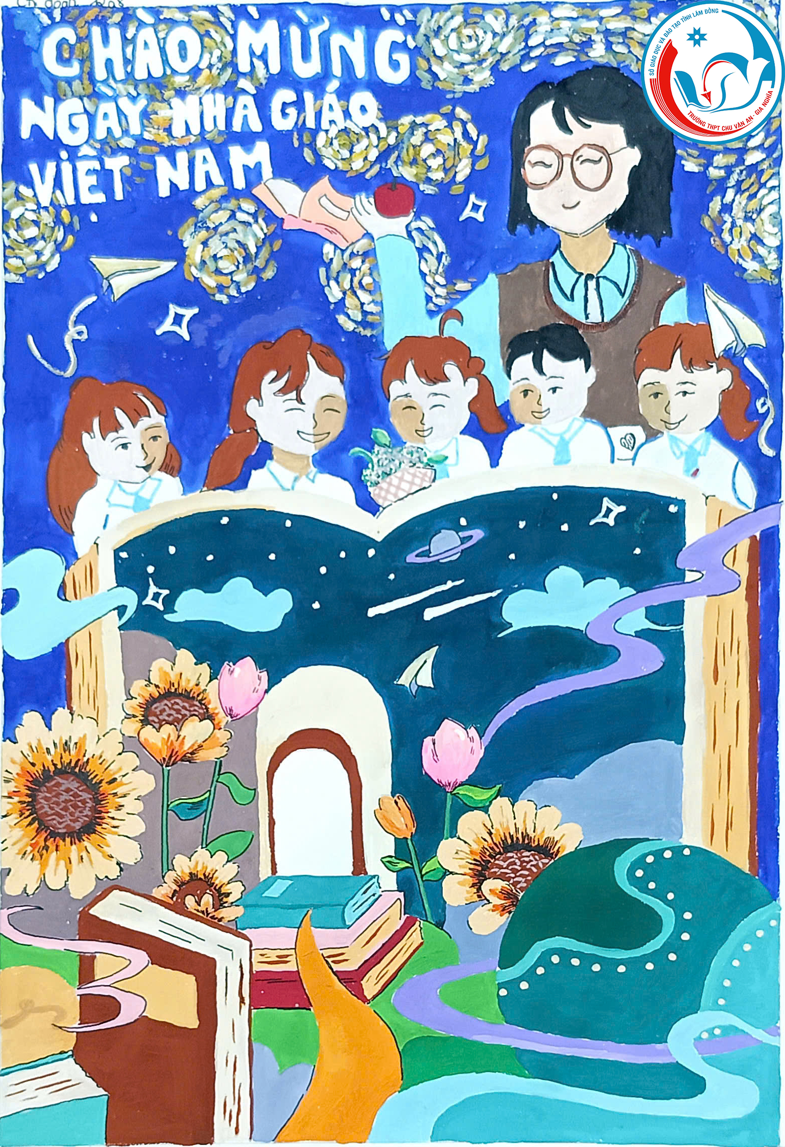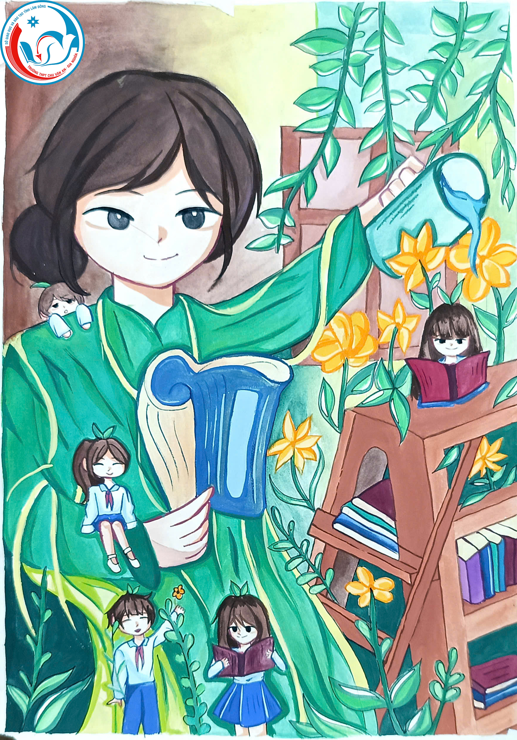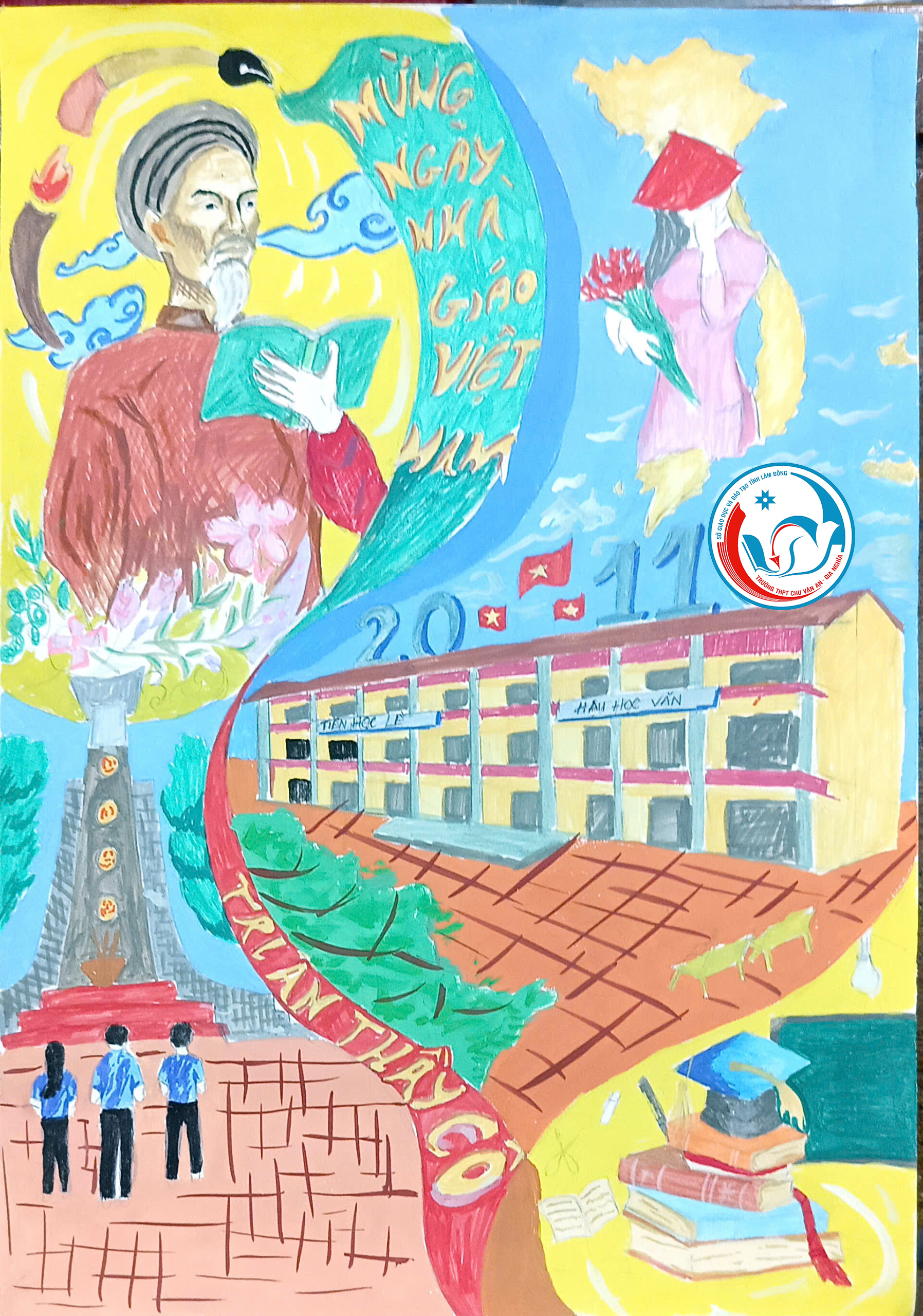 Nhiều tác phẩm mở rộng hơn về đời sống học đường, tri ân sự dẫn dắt của thầy cô trong từng giờ học, trong những buổi hoạt động tập thể, hay những phút trò chuyện đầy ân cần dưới hàng ghế đá. Một số tranh thể hiện tình bạn trong sáng của học sinh như một phần của hành trình trưởng thành mà thầy cô luôn đồng hành và nâng đỡ. Tất cả hòa lại thành một thông điệp chung: lòng biết ơn sâu sắc đối với những người đã chắp cánh ước mơ, gìn giữ ngọn lửa tri thức và tô sắc tháng 11 bằng tình thầy trò ấm áp.