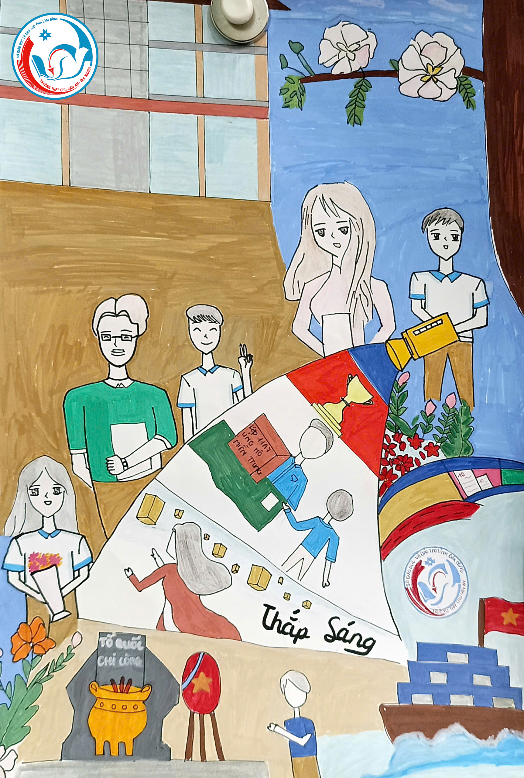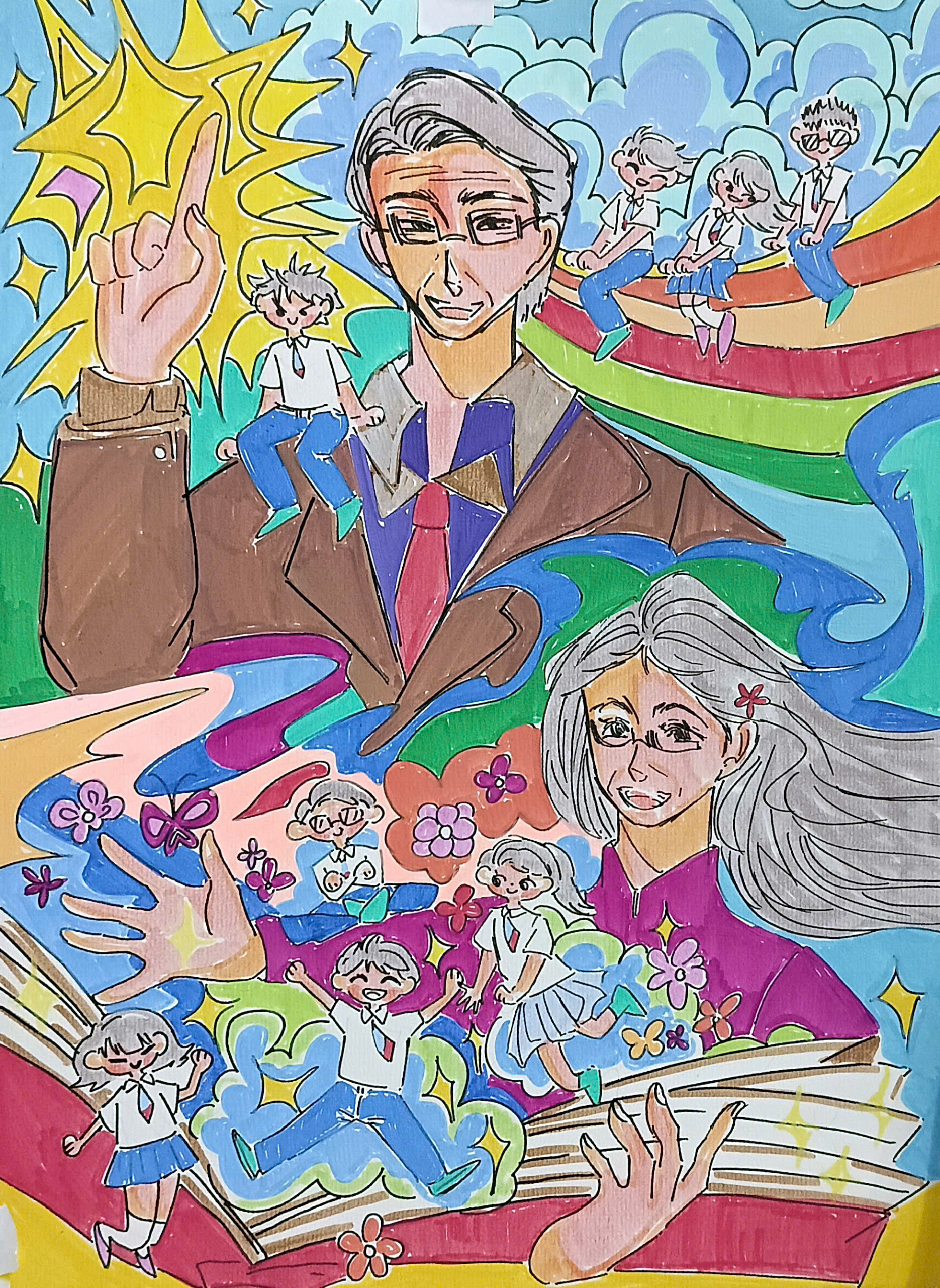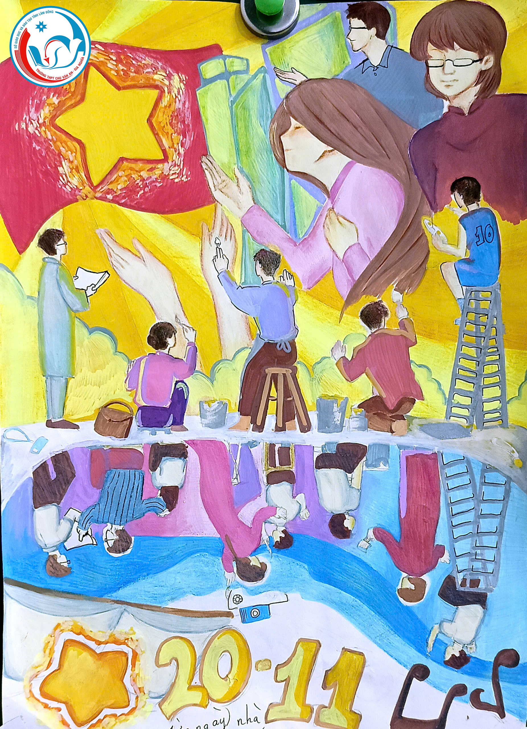 Nhiều tác phẩm mở rộng hơn về đời sống học đường, tri ân sự dẫn dắt của thầy cô trong từng giờ học, trong những buổi hoạt động tập thể, hay những phút trò chuyện đầy ân cần dưới hàng ghế đá. Một số tranh thể hiện tình bạn trong sáng của học sinh như một phần của hành trình trưởng thành mà thầy cô luôn đồng hành và nâng đỡ. Tất cả hòa lại thành một thông điệp chung: lòng biết ơn sâu sắc đối với những người đã chắp cánh ước mơ, gìn giữ ngọn lửa tri thức và tô sắc tháng 11 bằng tình thầy trò ấm áp.