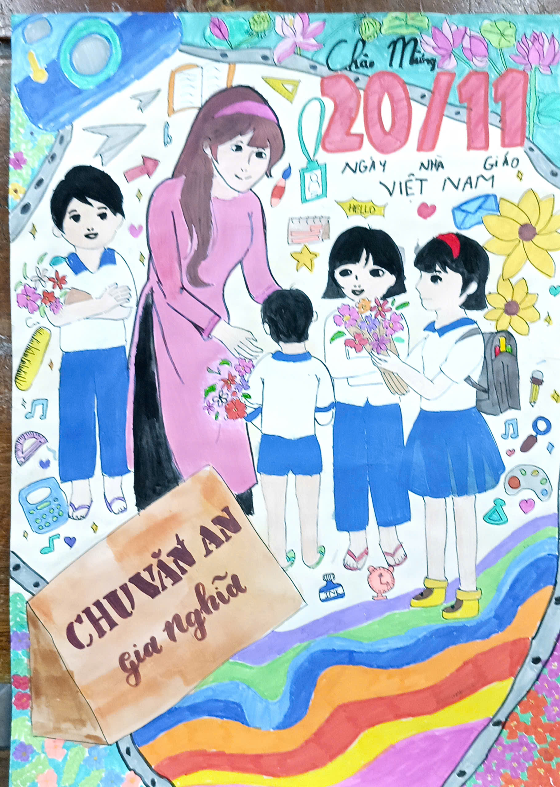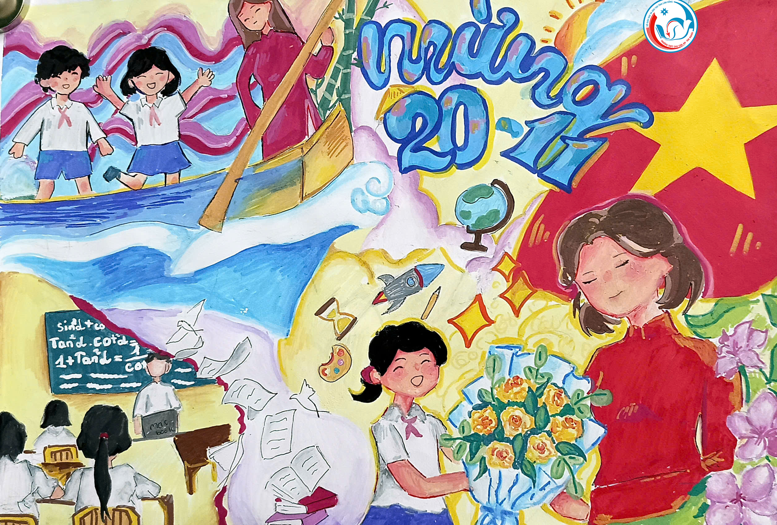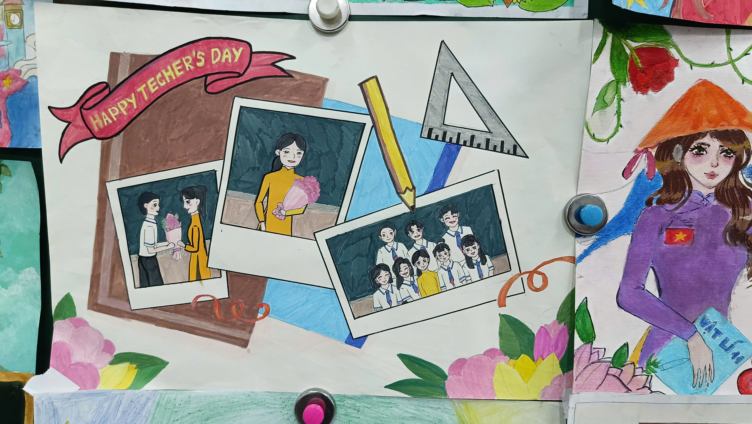 Điểm đáng quý ở hội thi năm nay là sự sáng tạo mạnh mẽ của học sinh. Các tác phẩm không chỉ đẹp về bố cục và màu sắc, mà còn thể hiện chiều sâu cảm xúc: sự kính trọng, biết ơn và tình cảm học trò dành cho những người sẽ mãi đi cùng năm tháng. Mỗi nét vẽ như một lời tri ân mộc mạc, nhẹ nhàng mà chạm đến trái tim người xem.