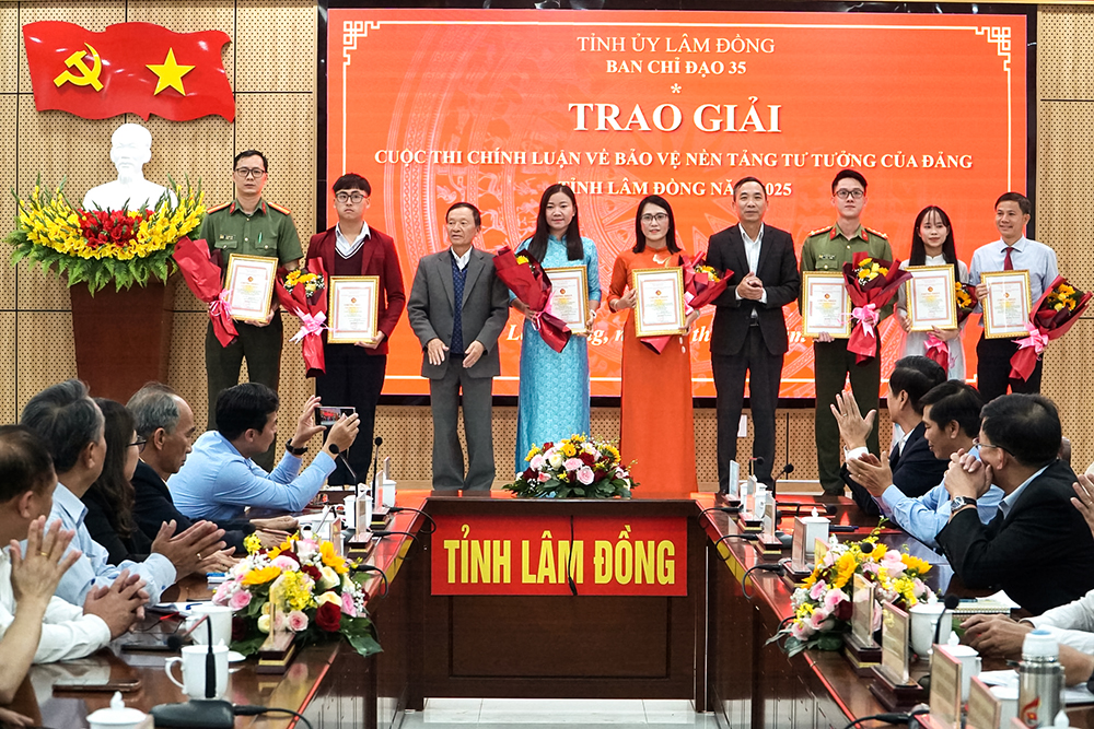 Chiều 2/4, Ban Chỉ đạo 35 Tỉnh ủy Lâm Đồng tổ chức Lễ trao giải Cuộc thi chính luận về bảo vệ nền tảng tư tưởng của Đảng tỉnh năm 2025 với sự tham dự của lãnh đạo tỉnh, đại diện các sở, ban, ngành và đông đảo tác giả đạt giải.