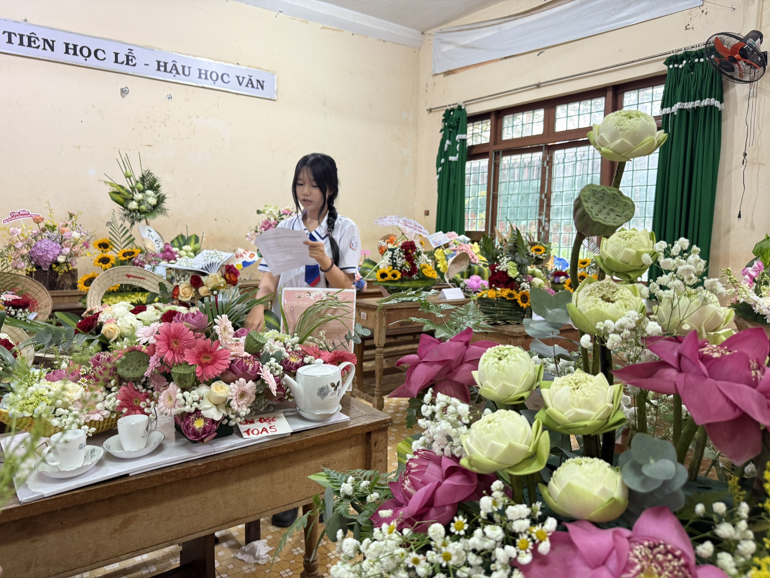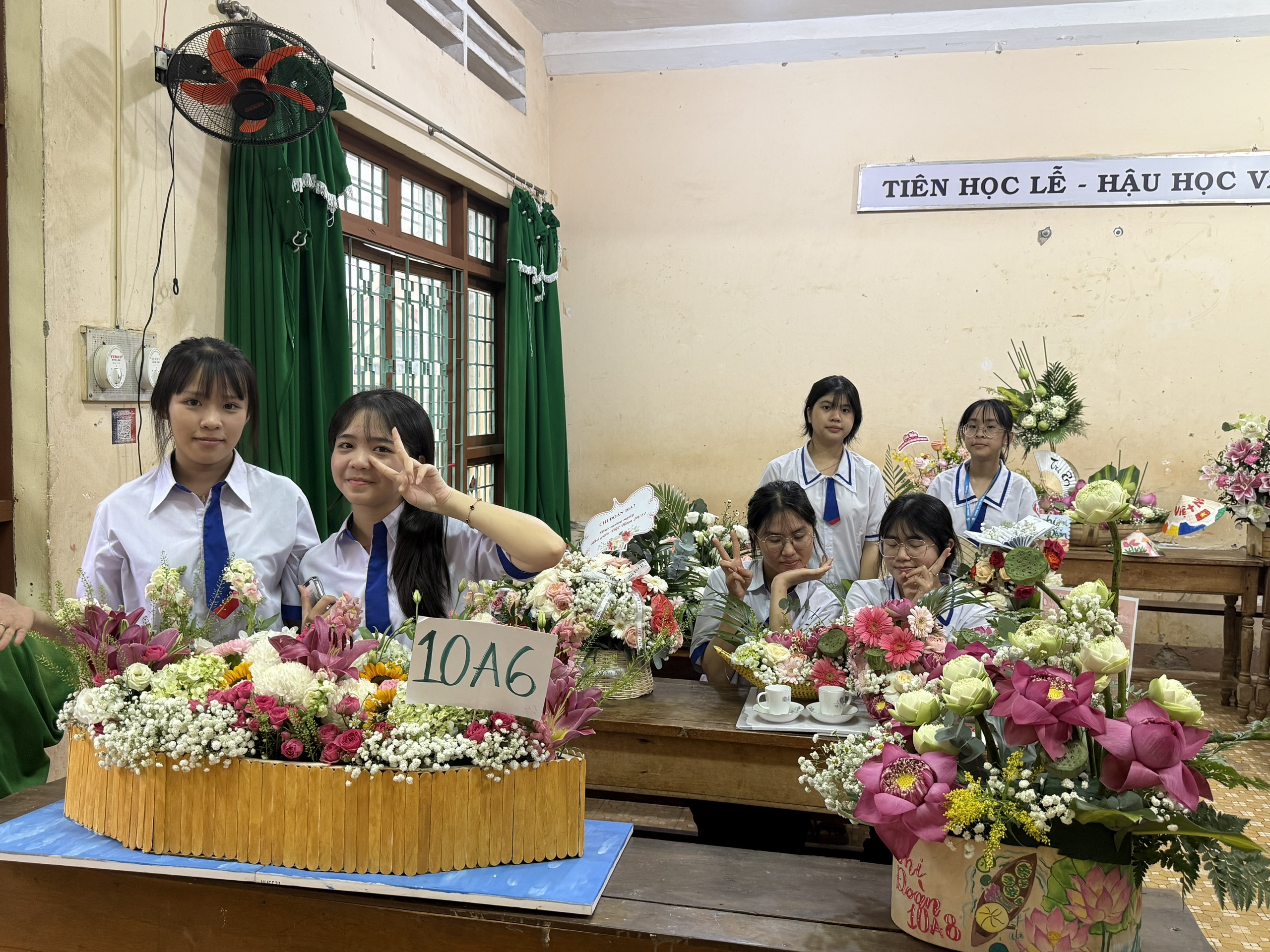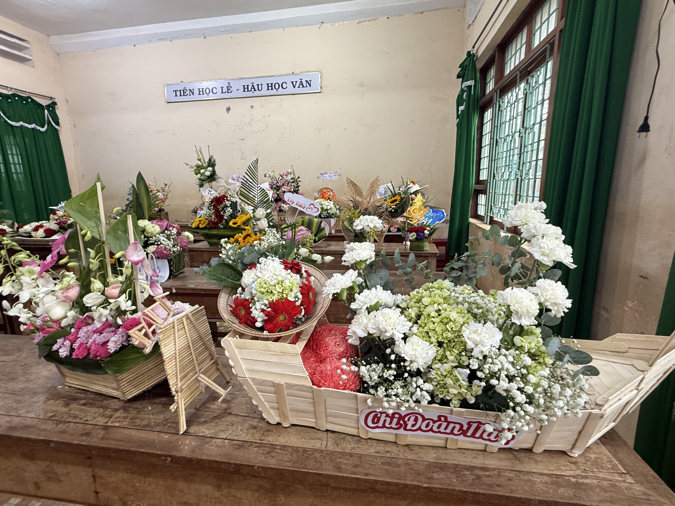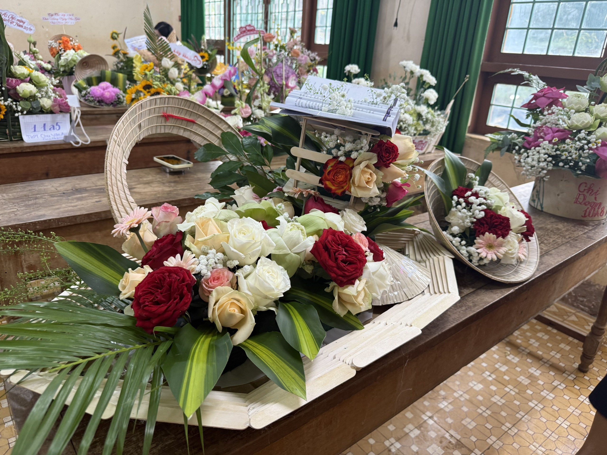 Sân trường đã trở nên tươi mới với sắc hoa phong phú và không khí chuẩn bị đầy háo hức của các lớp. Dưới bàn tay khéo léo của học sinh, từng cánh hoa được nâng niu, kết thành những lẵng hoa tinh tế. Có tác phẩm nhẹ nhàng, trong trẻo; có tác phẩm mạnh mẽ, sáng tạo; có bố cục mang hơi thở truyền thống; cũng có thiết kế hiện đại mang nét phá cách của tuổi trẻ. Dù khác nhau về phong cách, tất cả đều chung một tình cảm: biết ơn những người thầy đã lặng thầm “gieo sáng” tri thức.