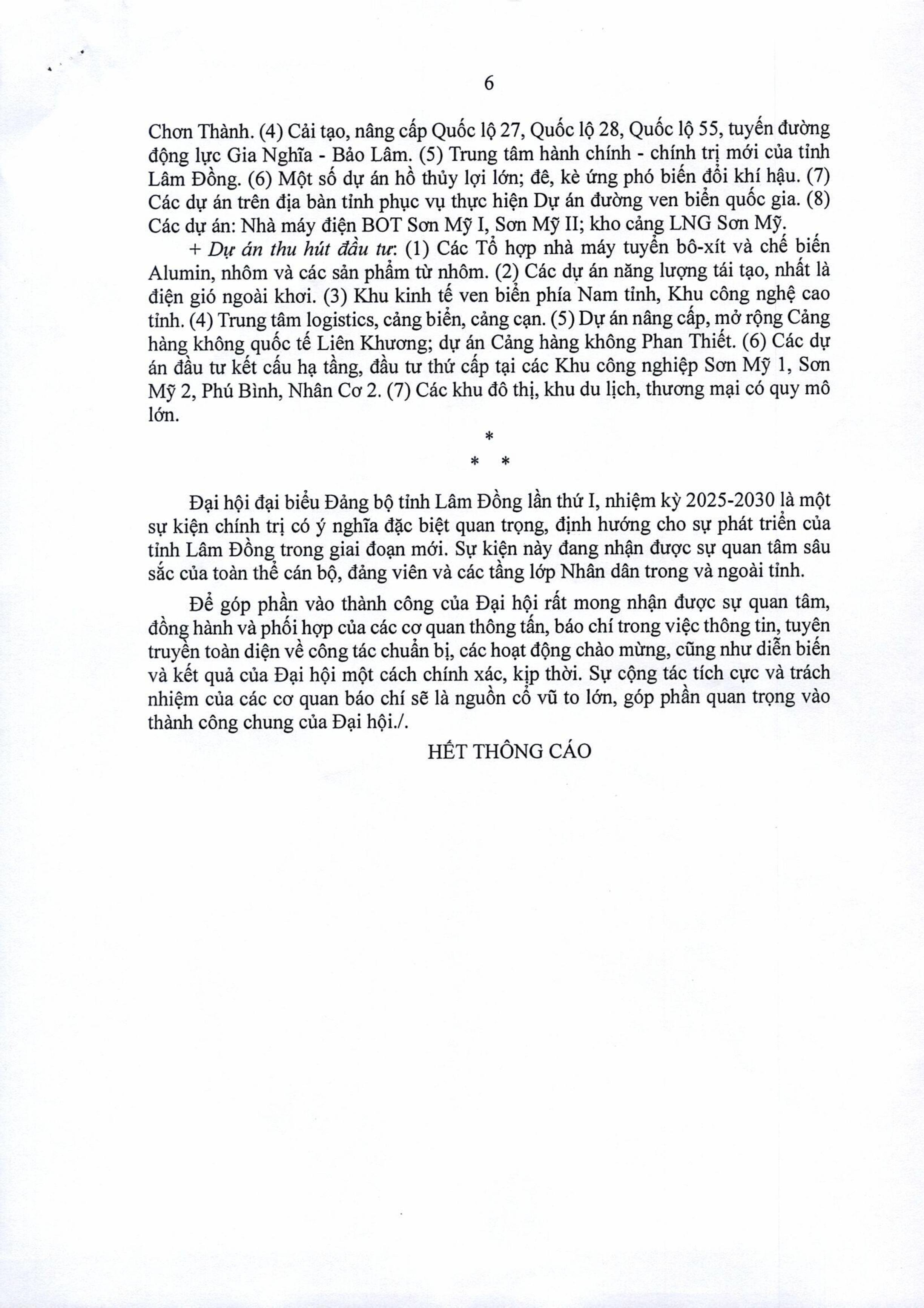 • Thông cáo báo chí Đại hội đại biểu Đảng bộ tỉnh Lâm Đồng lần thứ I, nhiệm kỳ 2025-2030 (ngày 02/10/2025)