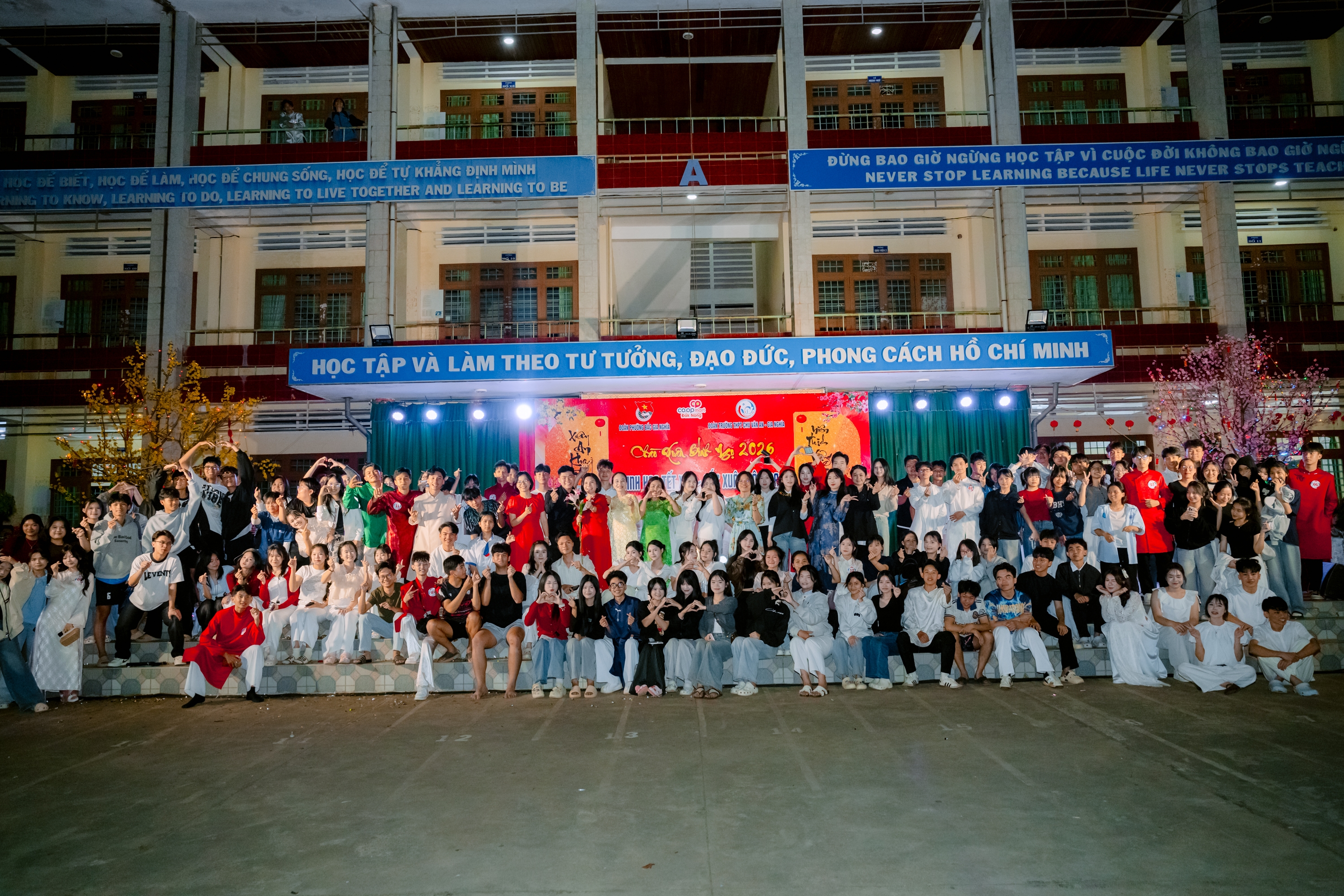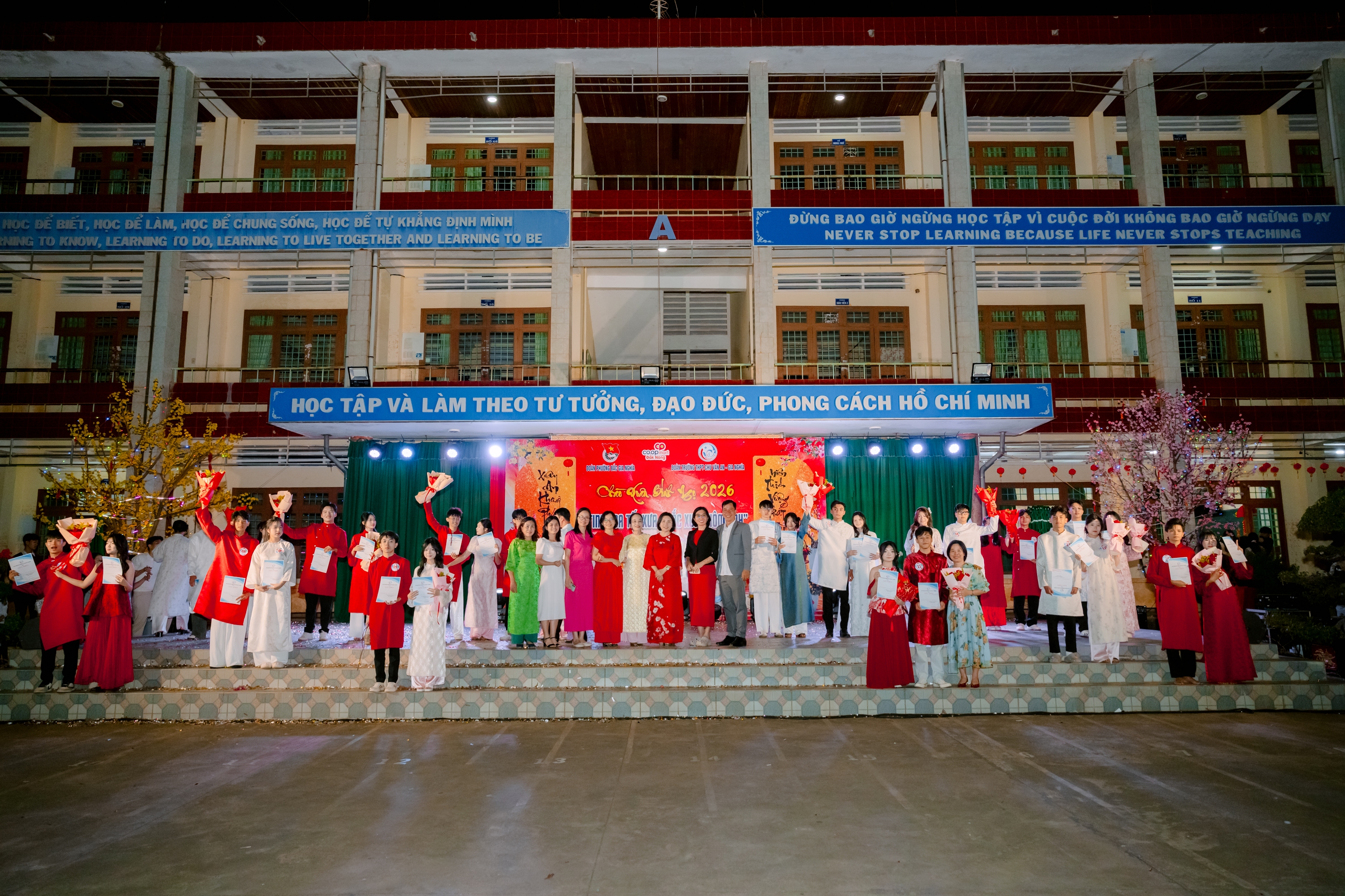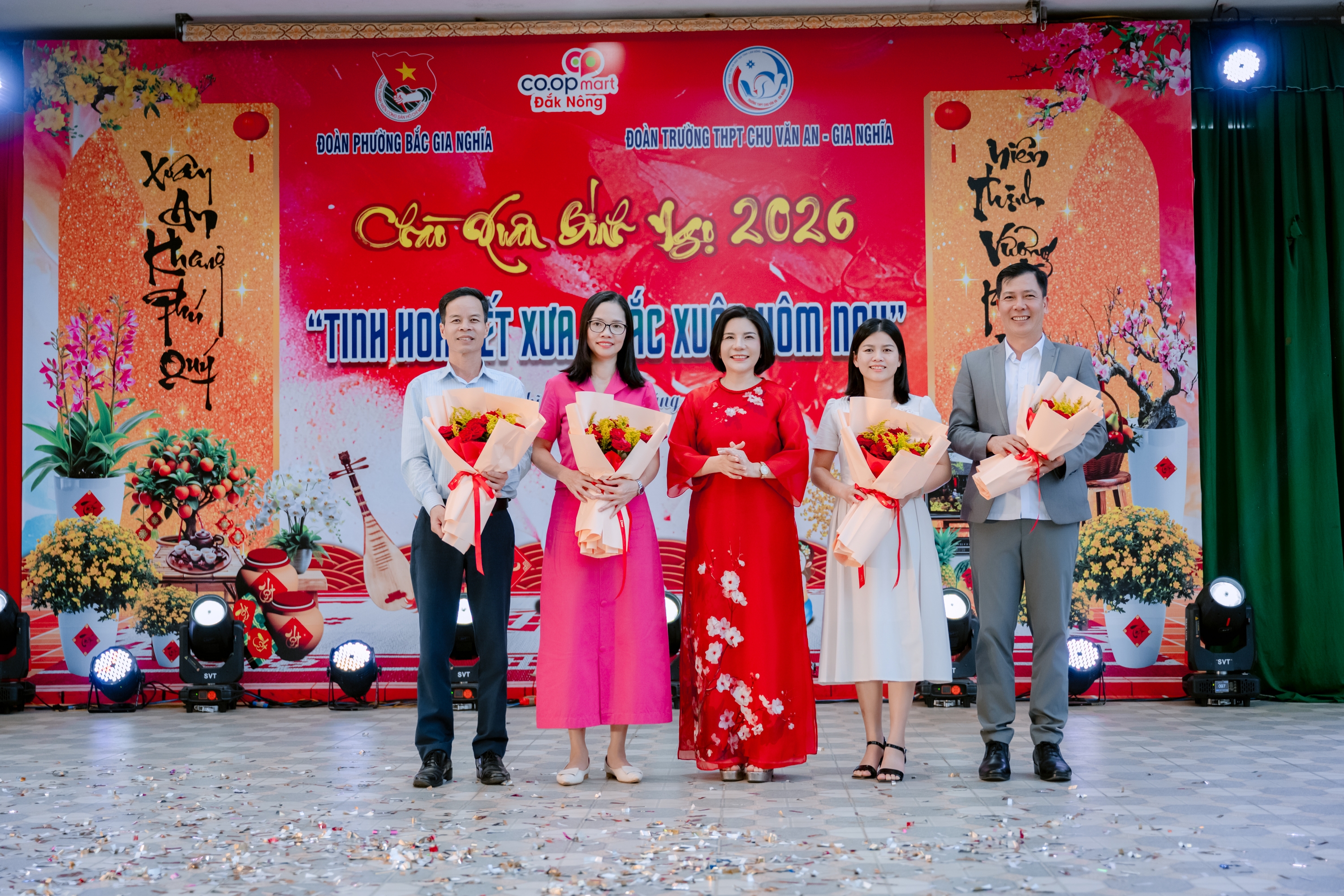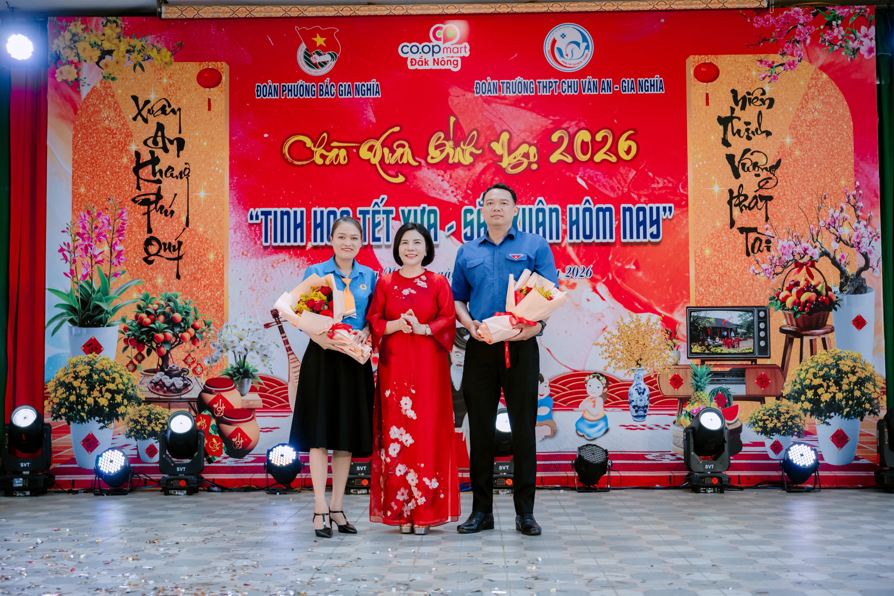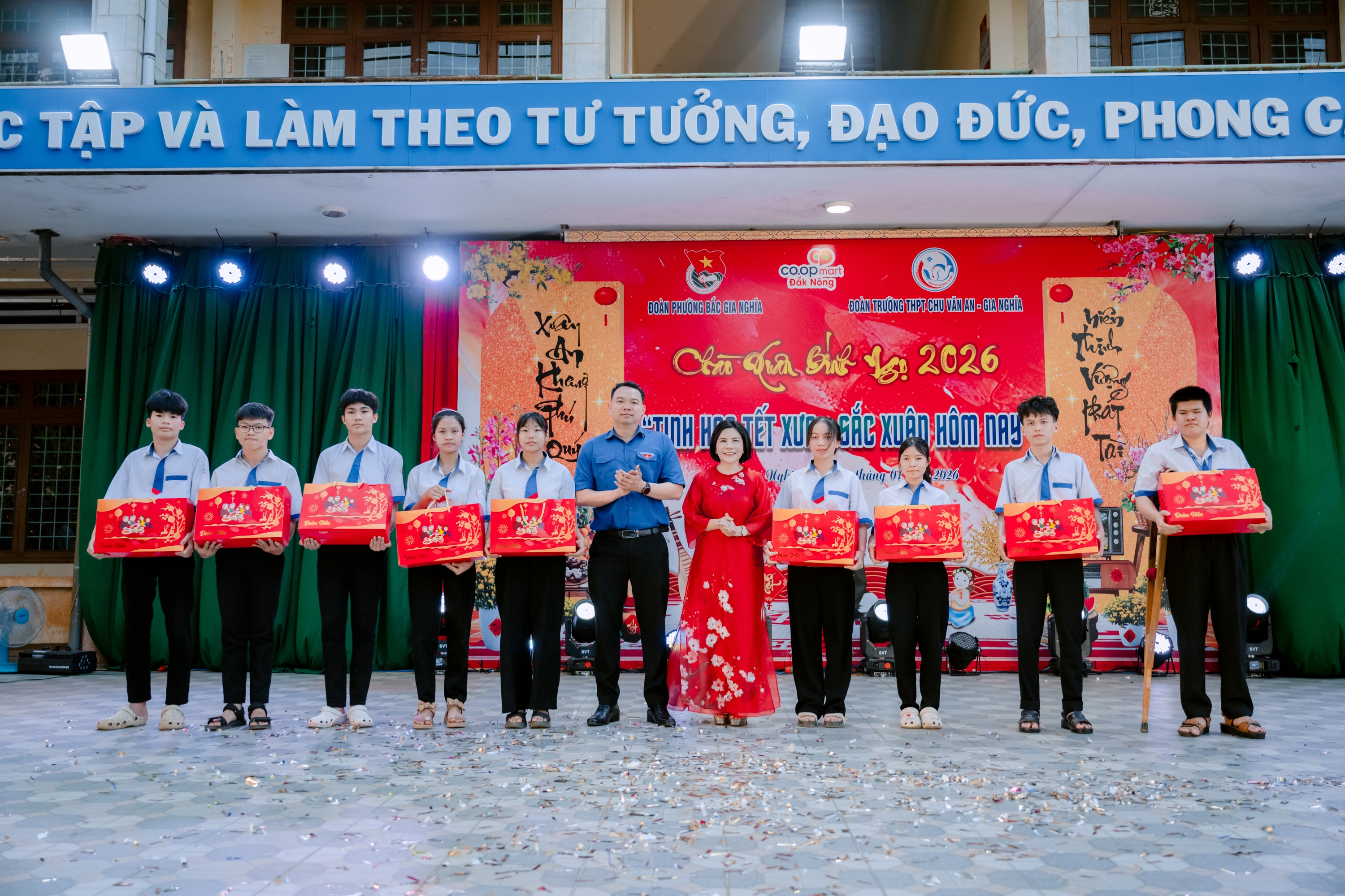 Tối ngày 30/01/2026, tại sân trường THPT Chu Văn An – Gia Nghĩa đã diễn ra Hội thi trình diễn “Tinh hoa Tết Xưa – Sắc Xuân hôm nay”, một hoạt động văn hóa – giáo dục có ý nghĩa thiết thực do Đoàn phường Bắc Gia Nghĩa phối hợp với Đoàn trường THPT Chu Văn An – Gia Nghĩa tổ chức, hướng tới chào mừng Xuân mới 2026.