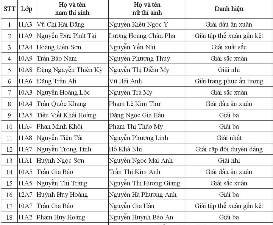 Hội thi được tổ chức trong không khí vui tươi, ấm áp của những ngày giáp Tết, thu hút sự tham gia tích cực của học sinh toàn trường. Mỗi lớp đăng ký 01 cặp thí sinh nam – nữ, tham gia trình diễn trang phục Tết truyền thống với sự chuẩn bị nghiêm túc, sáng tạo và phù hợp với lứa tuổi học sinh. Các phần trình diễn đã góp phần tái hiện sinh động vẻ đẹp văn hóa Tết cổ truyền Việt Nam thông qua trang phục, đạo cụ và phong thái thể hiện tự tin trên sân khấu.