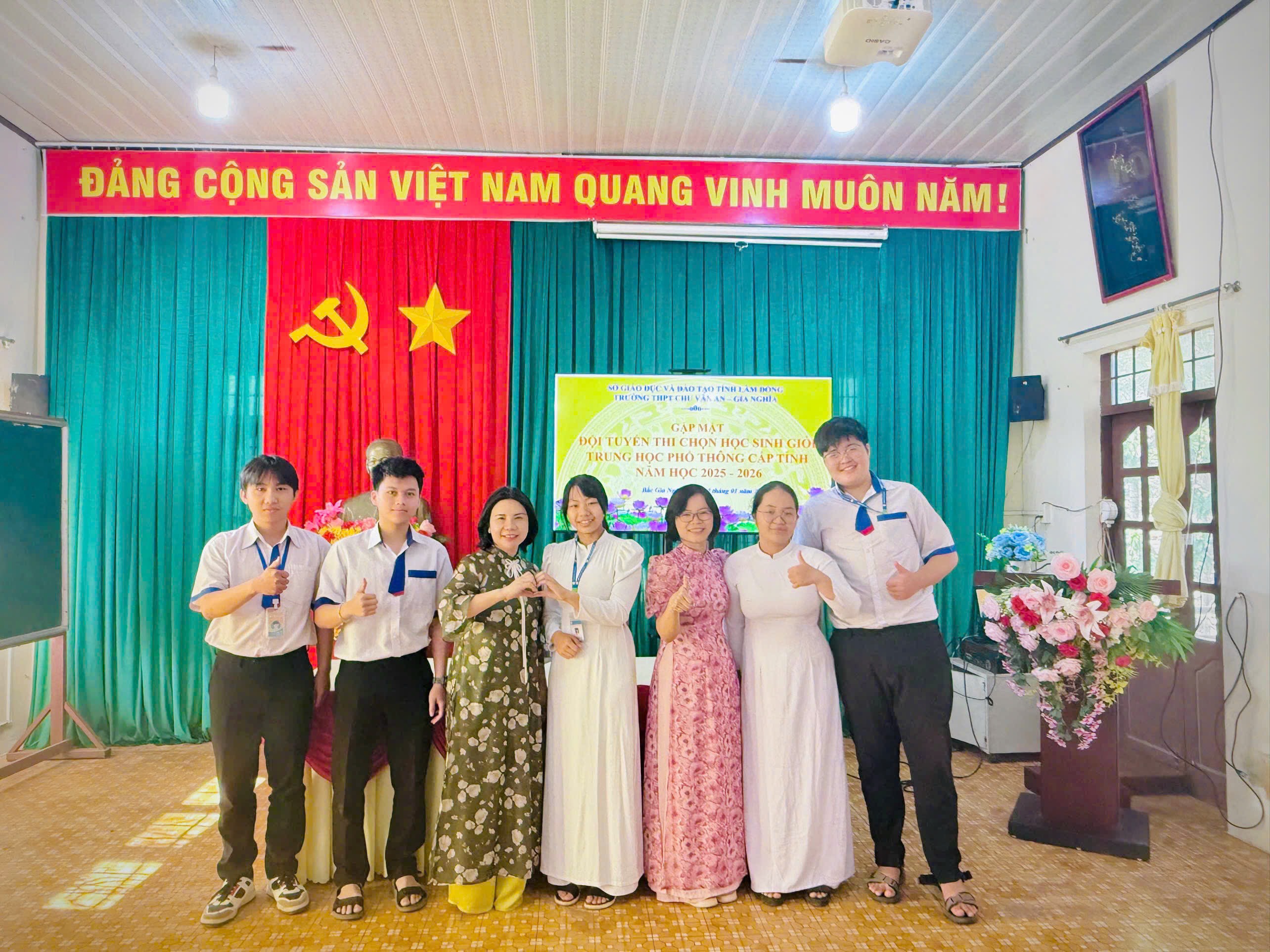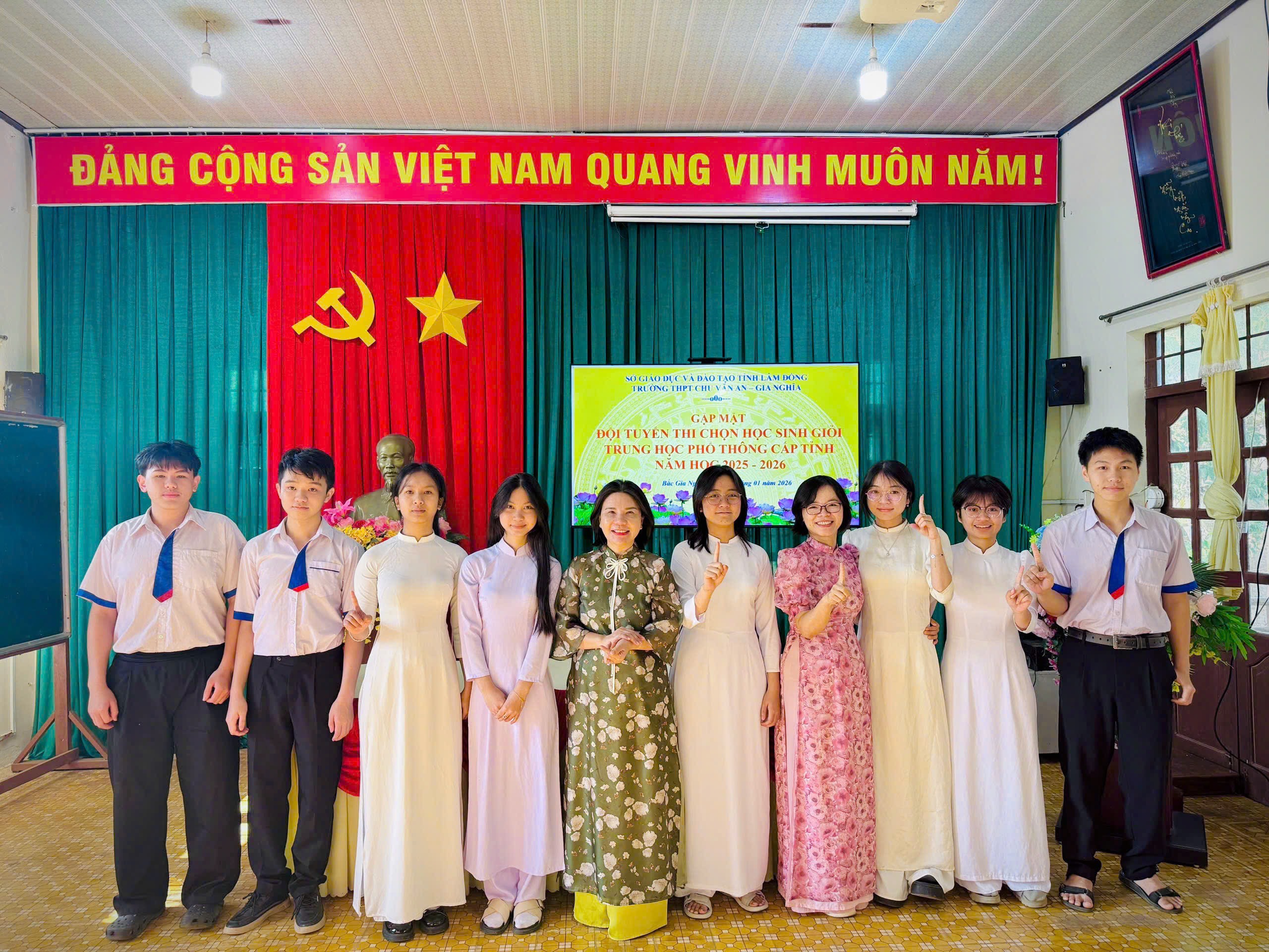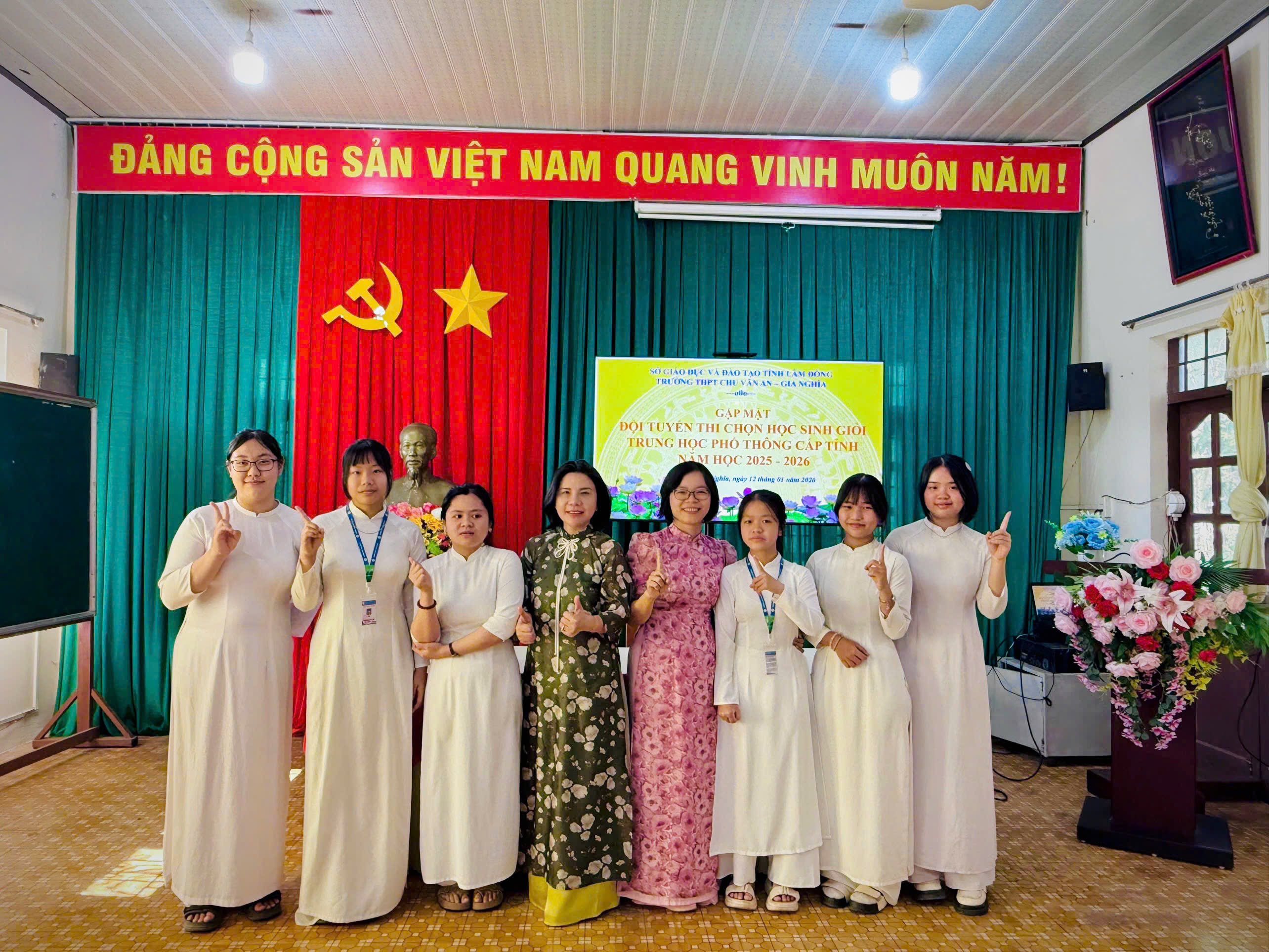 Sáng ngày 12 tháng 01 năm 2026, Trường THPT Chu Văn An – Gia Nghĩa đã long trọng tổ chức Lễ xuất quân đội tuyển tham dự Kỳ thi học sinh giỏi THPT cấp tỉnh năm học 2025–2026. Buổi lễ diễn ra trong không khí trang trọng, ấm áp, thể hiện sự quan tâm sâu sắc của nhà trường đối với công tác bồi dưỡng học sinh giỏi và niềm tin dành cho các em học sinh ưu tú trước khi bước vào kỳ thi quan trọng.