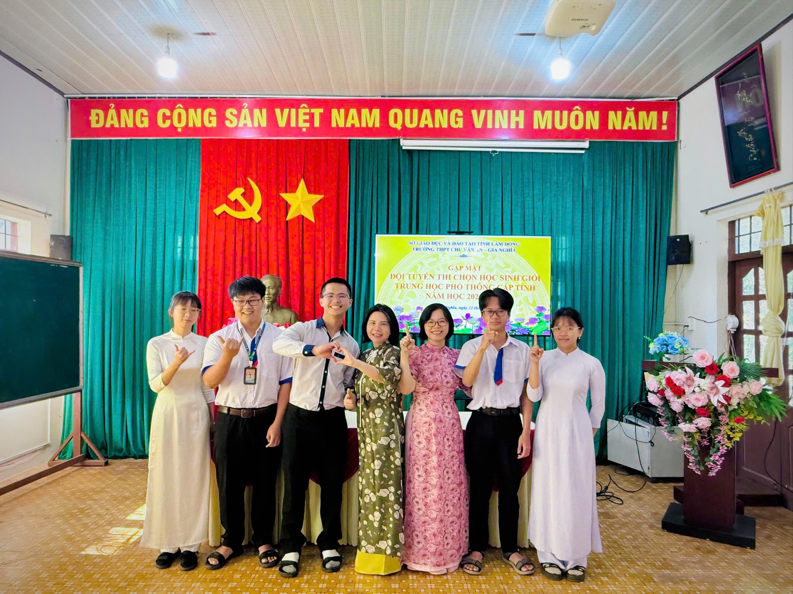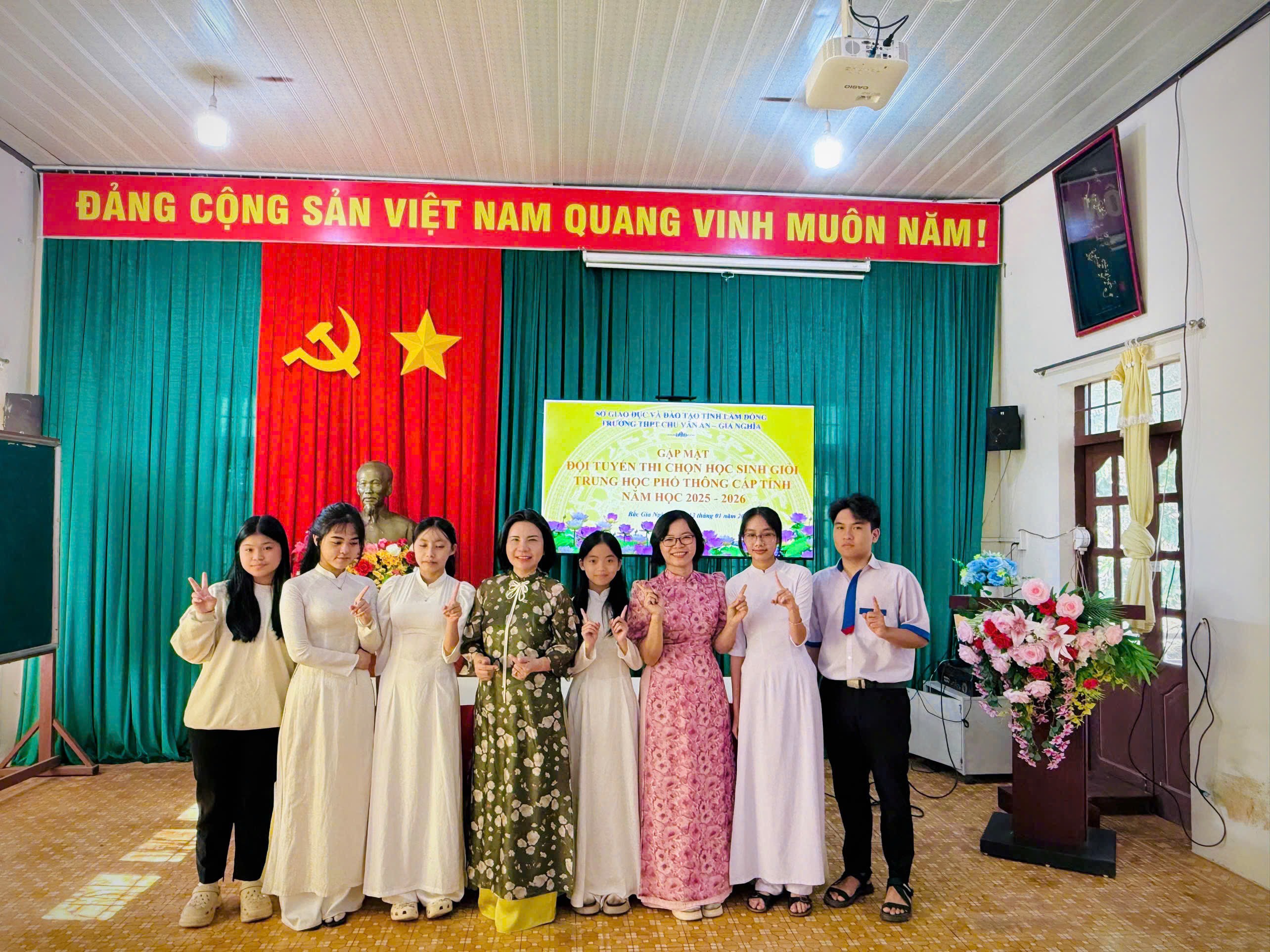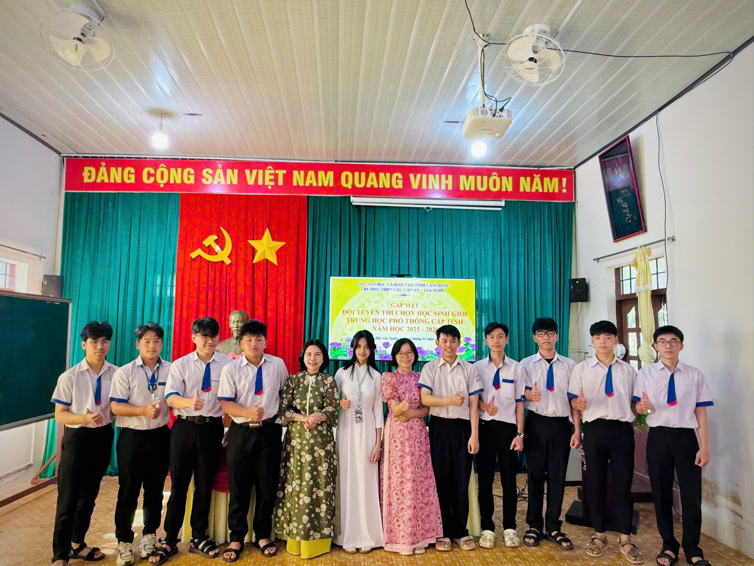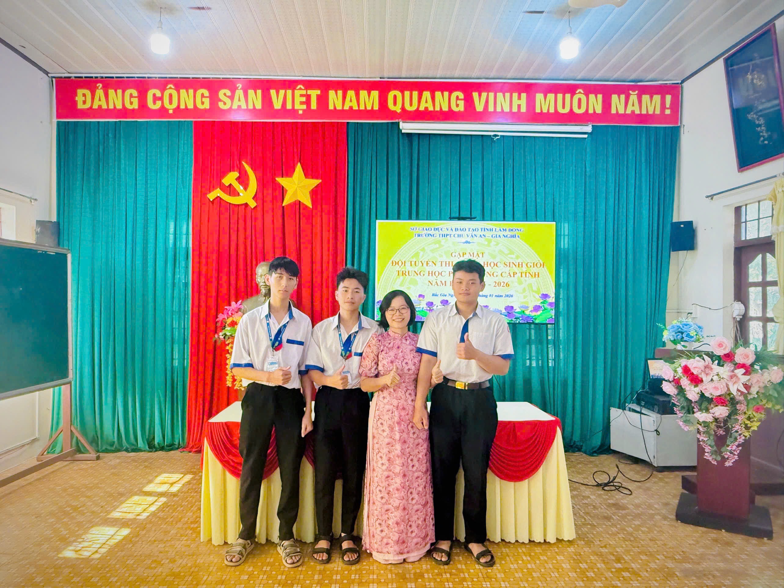 Sáng ngày 12 tháng 01 năm 2026, Trường THPT Chu Văn An – Gia Nghĩa đã long trọng tổ chức Lễ xuất quân đội tuyển tham dự Kỳ thi học sinh giỏi THPT cấp tỉnh năm học 2025–2026. Buổi lễ diễn ra trong không khí trang trọng, ấm áp, thể hiện sự quan tâm sâu sắc của nhà trường đối với công tác bồi dưỡng học sinh giỏi và niềm tin dành cho các em học sinh ưu tú trước khi bước vào kỳ thi quan trọng.