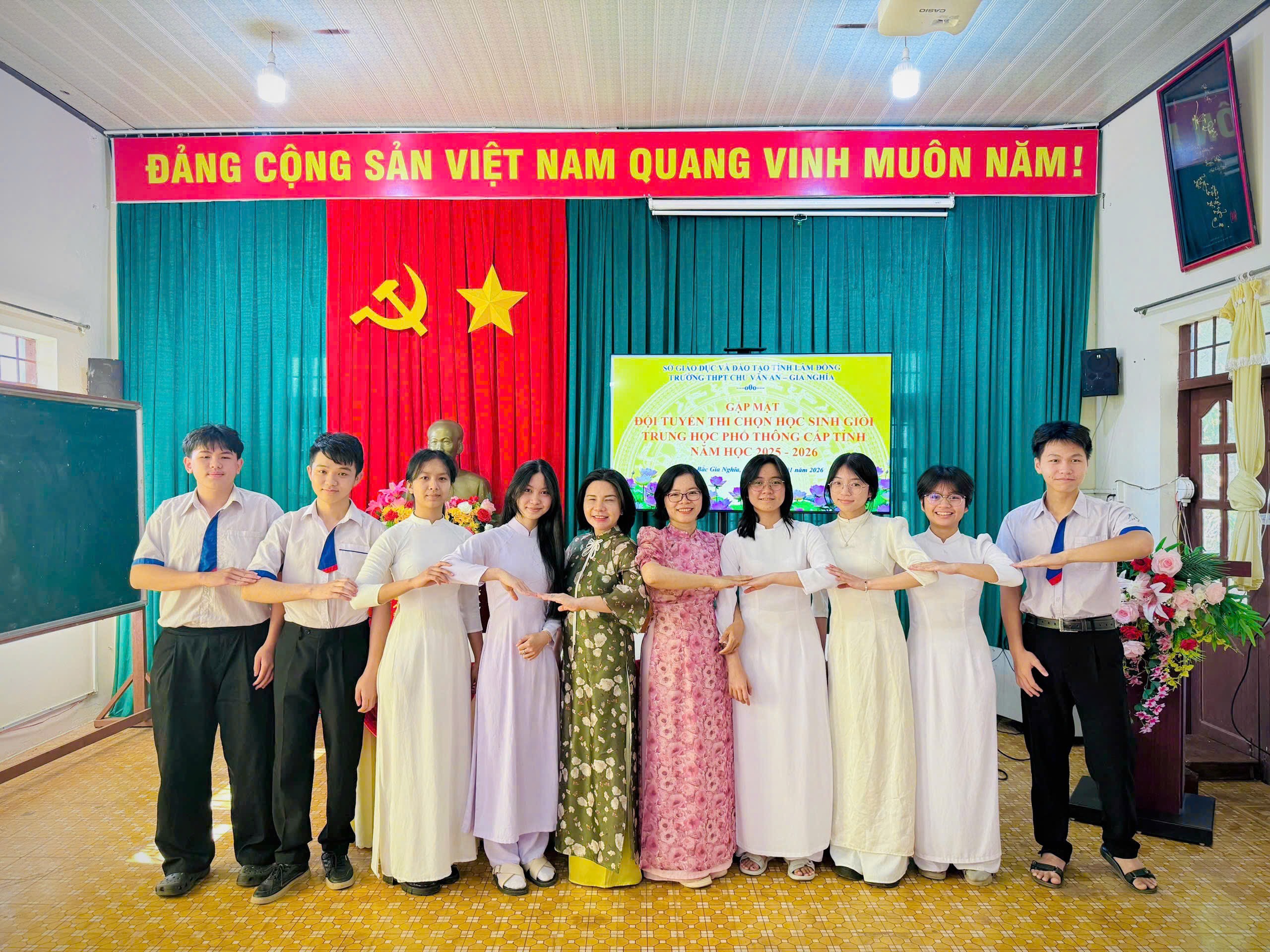 Buổi lễ xuất quân khép lại trong không khí phấn khởi, tin tưởng và đầy kỳ vọng. Với sự chuẩn bị chu đáo, tinh thần đoàn kết và quyết tâm cao, đội tuyển học sinh giỏi Trường THPT Chu Văn An – Gia Nghĩa được kỳ vọng sẽ đạt được những kết quả tích cực tại Kỳ thi học sinh giỏi THPT cấp tỉnh năm học 2025–2026, tiếp tục khẳng định chất lượng giáo dục và uy tín của nhà trường.