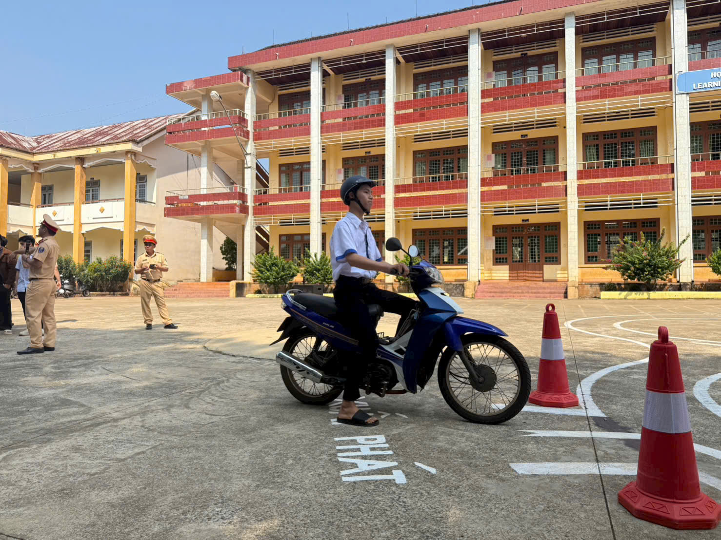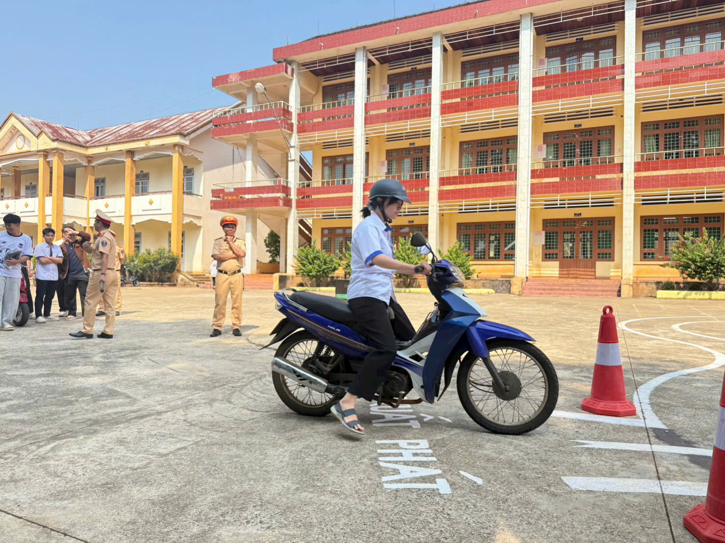 Hoạt động tuyên truyền, phổ biến giáo dục pháp luật về an toàn giao thông kết hợp hướng dẫn kỹ năng lái xe máy an toàn và thực hành sa hình không chỉ mang tính thiết thực mà còn có ý nghĩa lâu dài trong công tác giáo dục học sinh. Thông qua chương trình, các em được trang bị đầy đủ kiến thức pháp luật, nâng cao kỹ năng điều khiển phương tiện và hình thành thói quen tham gia giao thông an toàn, văn minh ngay từ khi còn ngồi trên ghế nhà trường.