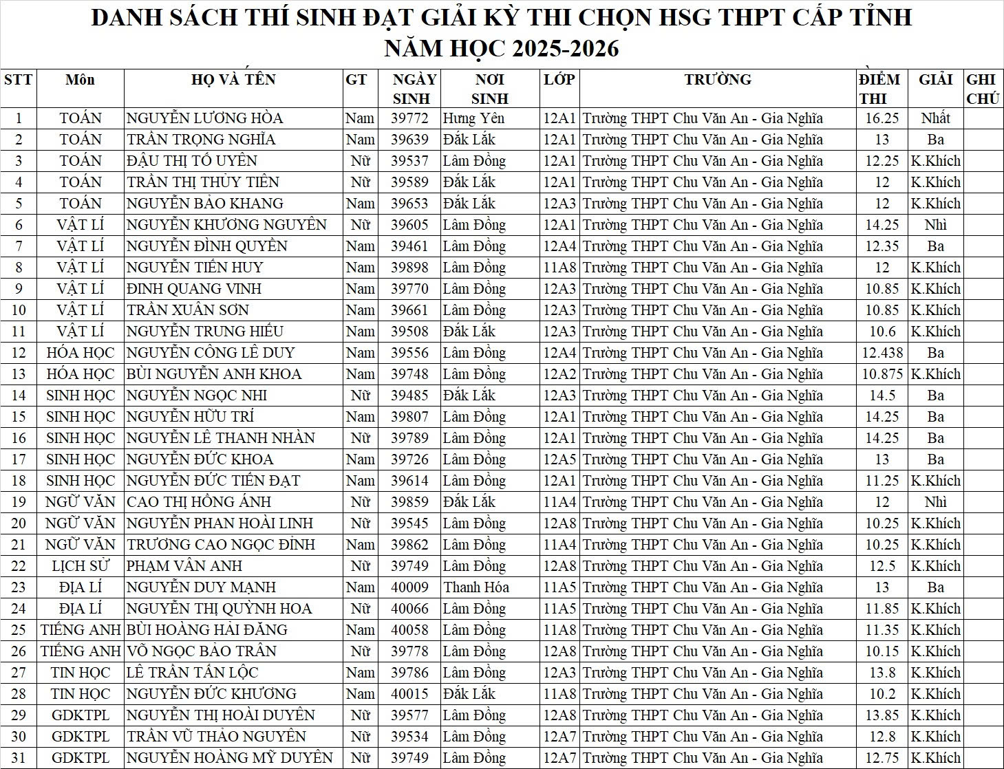 • TRƯỜNG THPT CHU VĂN AN – GIA NGHĨA XUẤT SẮC ĐẠT GIẢI NHẤT CUỘC THI KHOA HỌC KỸ THUẬT CẤP TỈNH DÀNH CHO HỌC SINH THCS VÀ THPT NĂM HỌC 2025 – 2026 (23/01/2026)